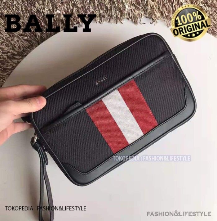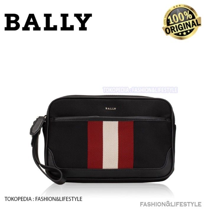 Bally Men Caliros Clutch Bag Black Stripe 100- ORIGINAL BALLY