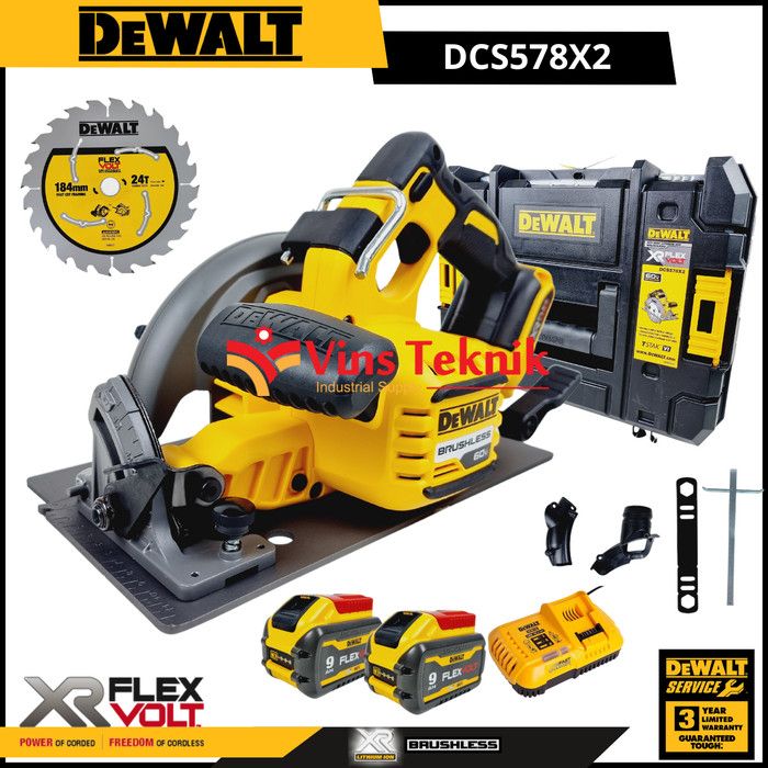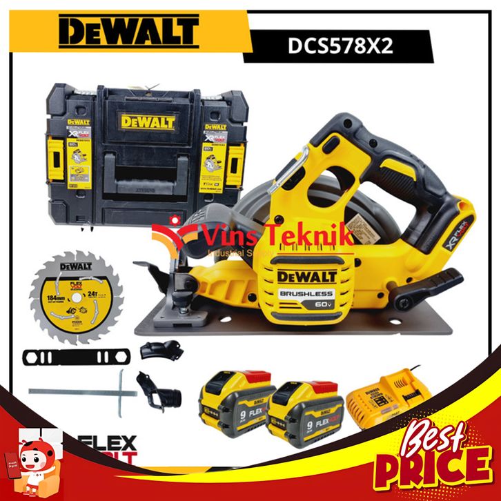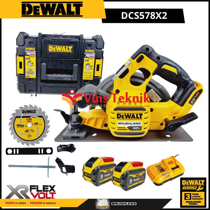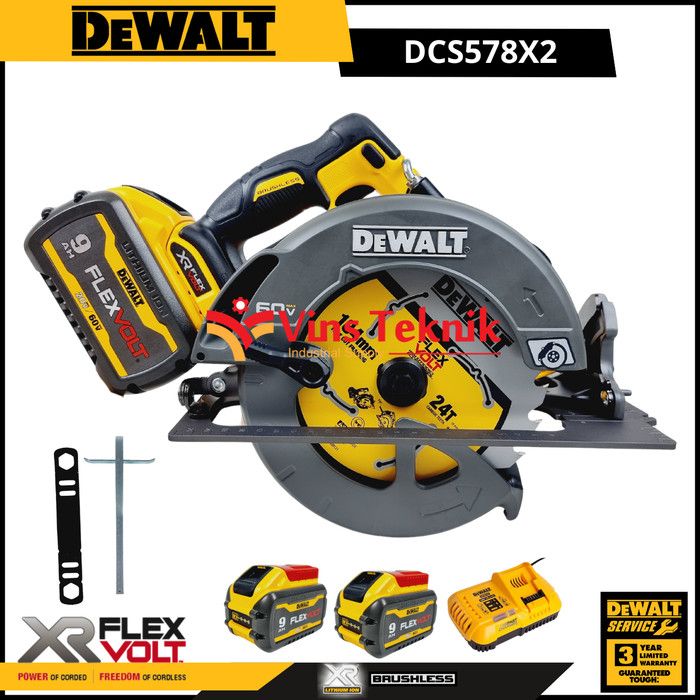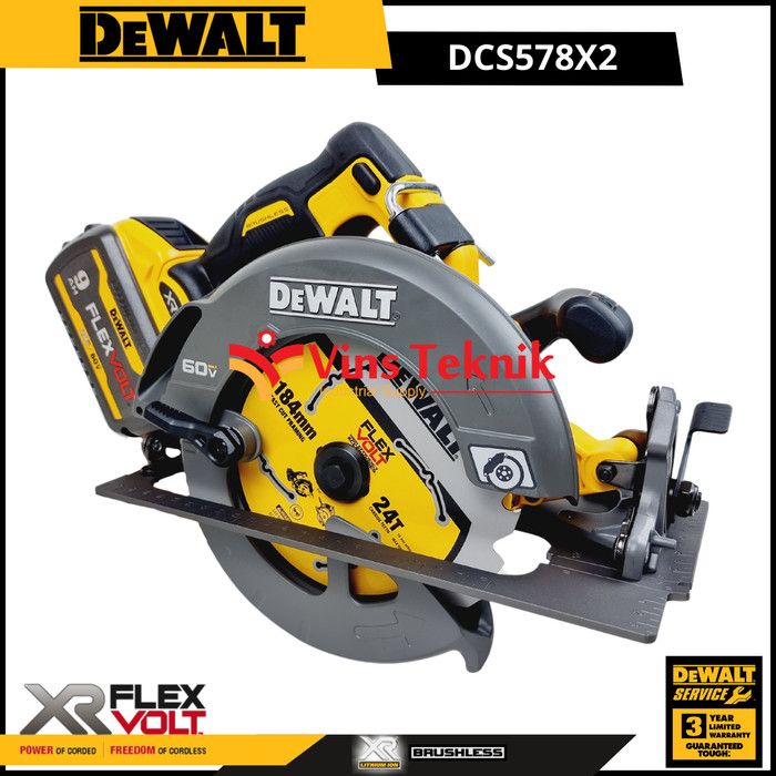 FREE DP MESIN POTONG KAYU CIRCULAR SAW CORDLESS 60V DCS578X2 DEWALT DCS 578