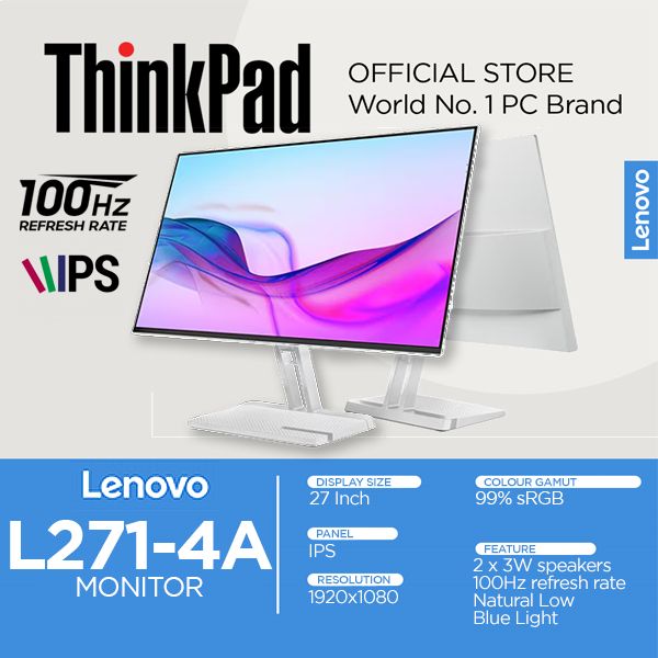 LENOVO L27i-4A Monitor 27 Inch Full HD IPS 100Hz 99 sRGB 16 9 3W Speakers Anti-glare 67BEKAC1WW