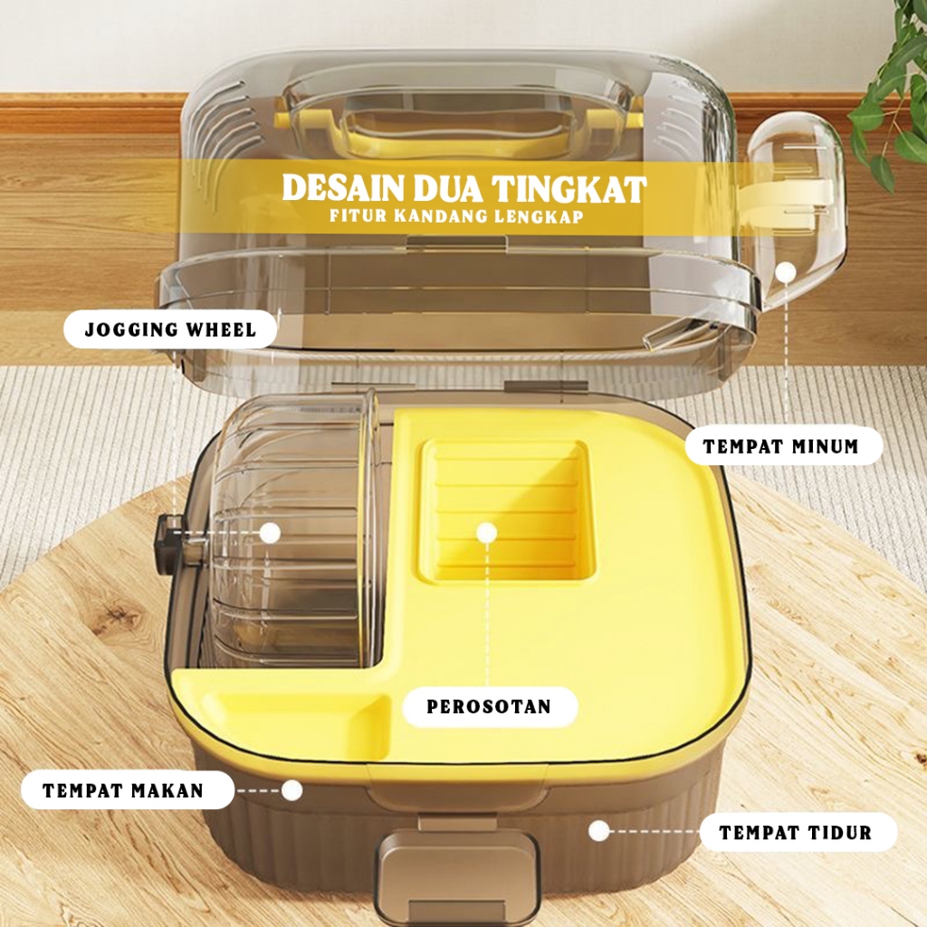 [Harga Spesial] PET THERE Kandang Hamster Portable 2 Tingkat F33 Kandang Mini Hamster Transparan Fasilitas Lengkap