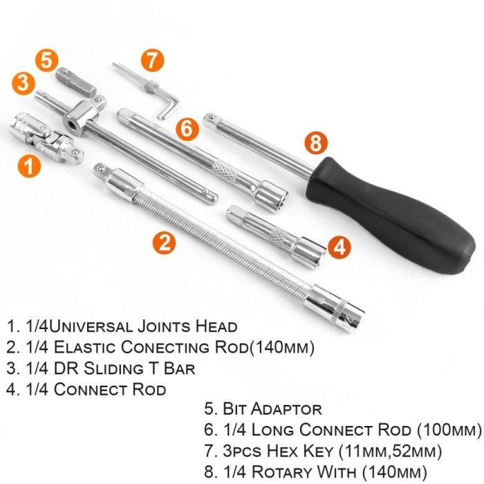 Set Kunci Shock 1/4 Socket + Obeng Socket Set 46 Pcs