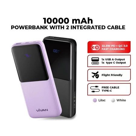 VIVAN Powerbank 10000mAh VPB-E10 4 Output Fast Charging 22.5W PD QC 3.0 LED Display