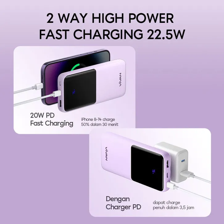 VIVAN Powerbank 10000mAh VPB-E10 4 Output Fast Charging 22.5W PD QC 3.0 LED Display