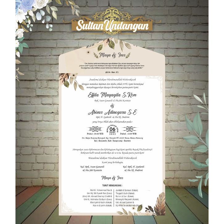Undangan Pernikahan isi 20 pcs Semi Amplop Lipat 3 SULTAN UNDANGAN