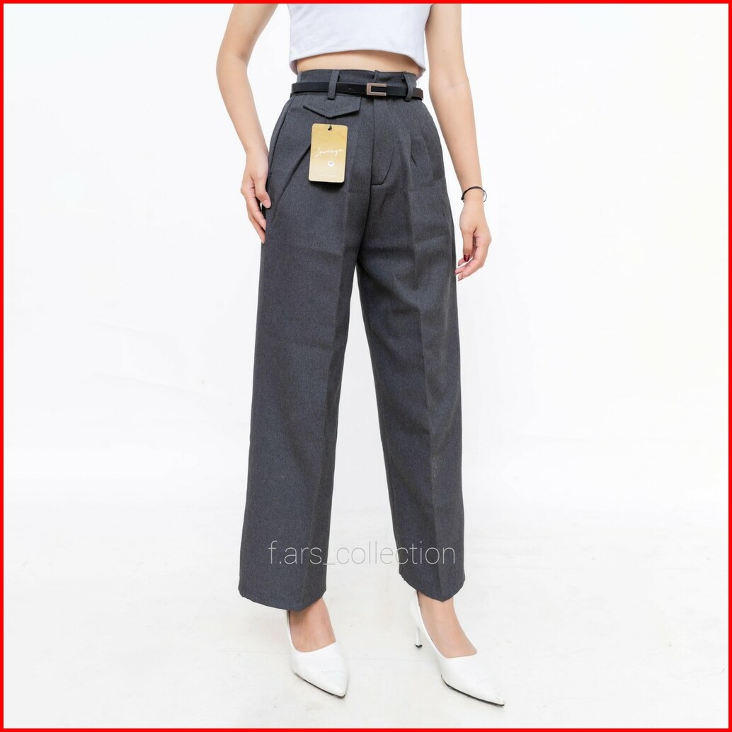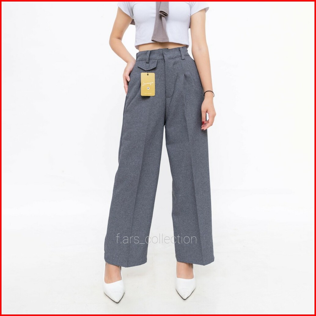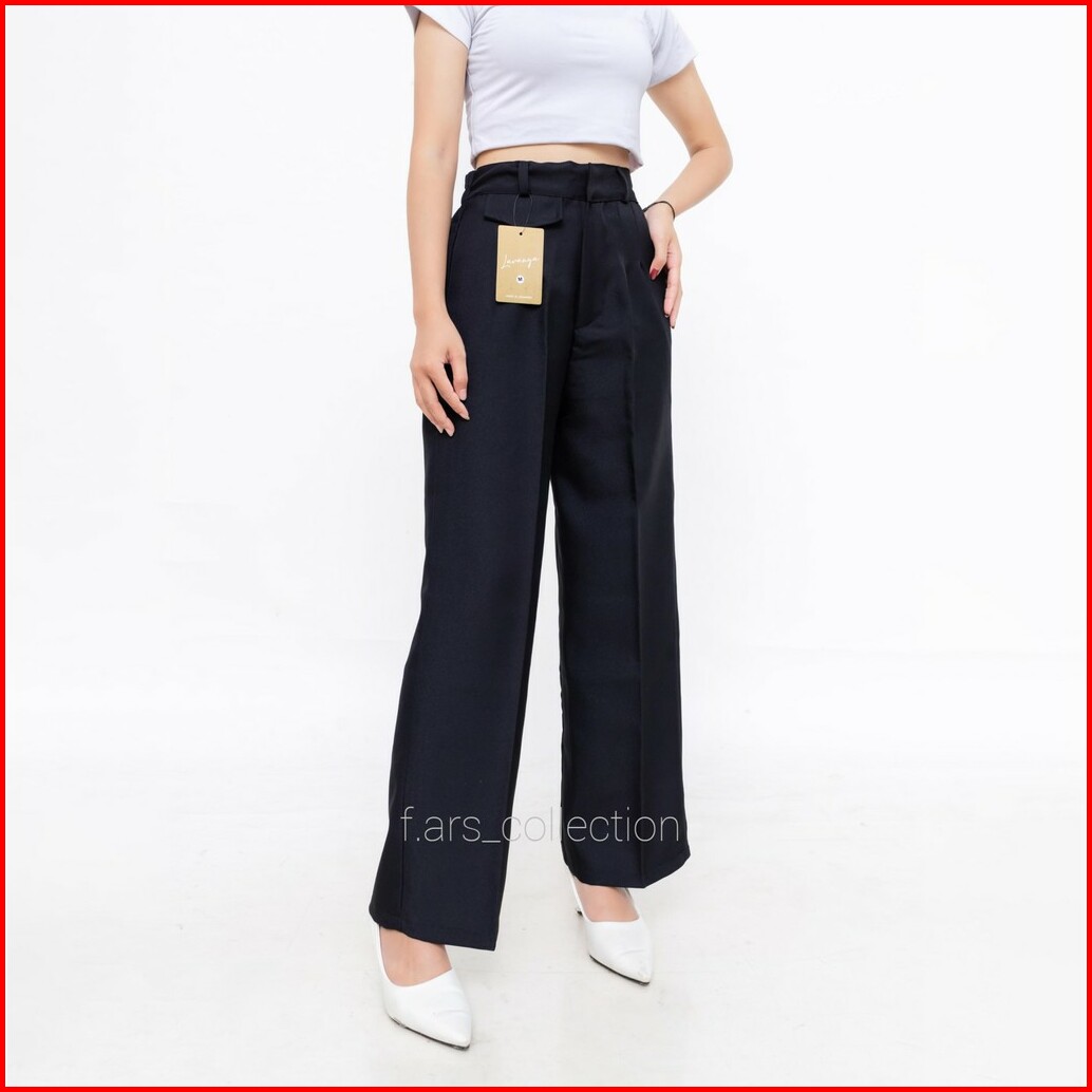 Oro Pants Celana Wanita Highwaist Panjang Kulot Bahan Anti Kusut Loose Pants Trouser Basic Kerja Korean Style