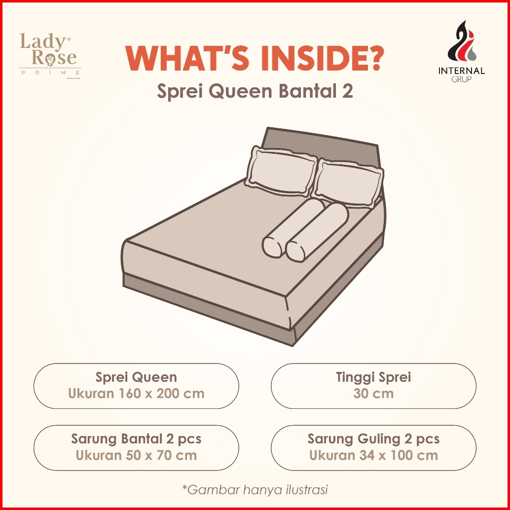 Lady Rose Lady Rose Prime - Sprei Queen 160x200 Tinggi 20cm 30cm Bantal 2 - Janet