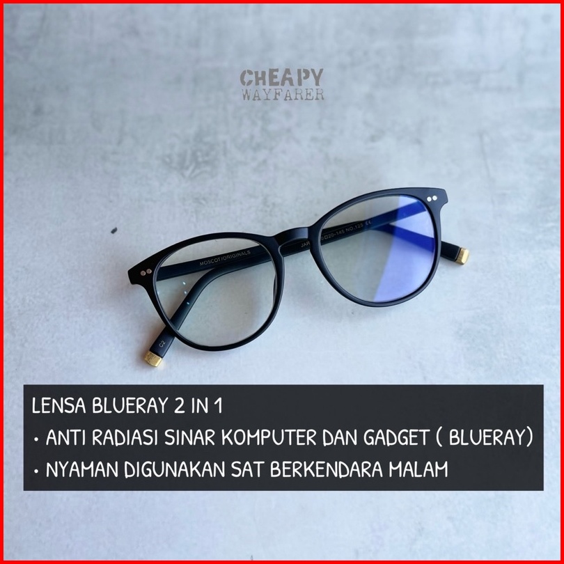 Kacamata Moscot Jared Unisex Paket Lensa Normal Dan Minus Cylinder Antiradiasi Photocromic Bluecromic