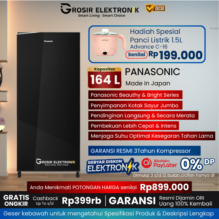GRATIS ONGKIR PANASONIC - Kulkas 1 Pintu 164L Low Watt [ NR-AFN 155L - 164L ] - kulkas panasonic 1 pintu - K1P - STGE