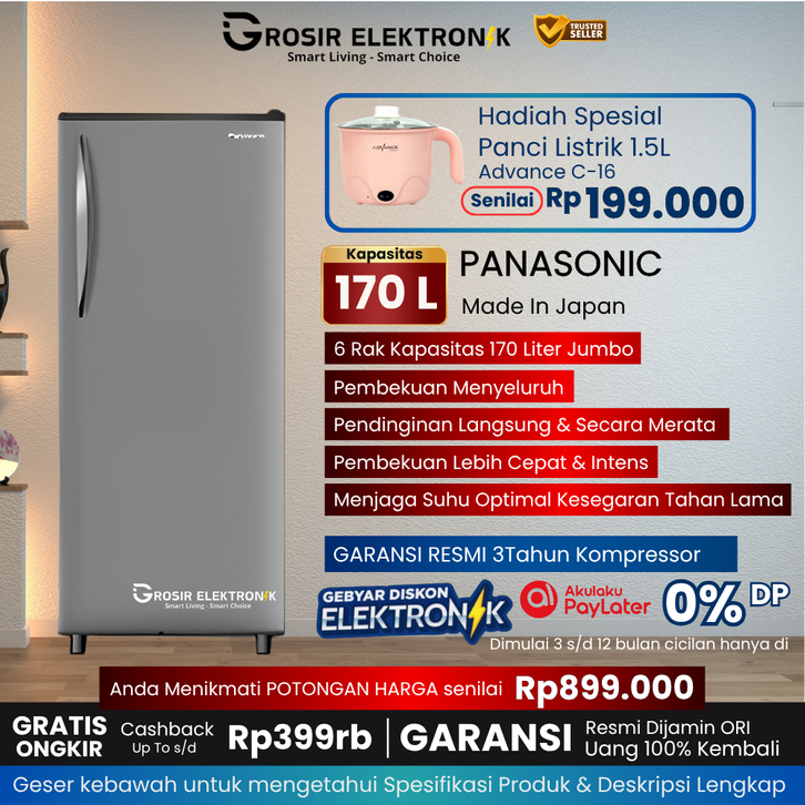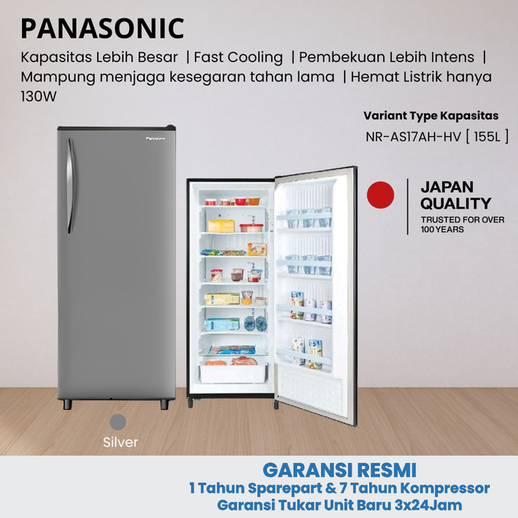 GRATIS ONGKIR PANASONIC - Kulkas Freezer 6Rak 170L Hemat Energi Garansi Resmi NR-AS17AH-SS - kulkas es batu - K1P