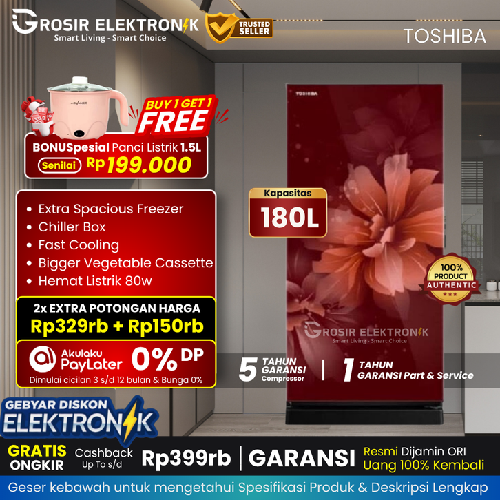 GRATIS ONGKIR TOSHIBA - Kulkas 1 Pintu 180L Jumbo [ GR-RDC 50L - 180L ] - Kulkas toshiba - K1P - STGE