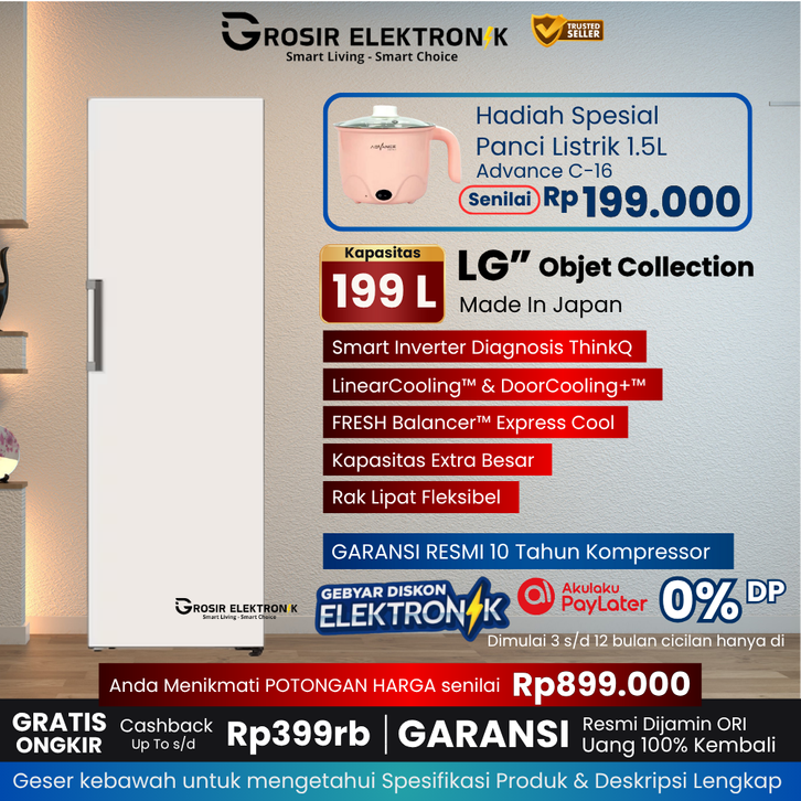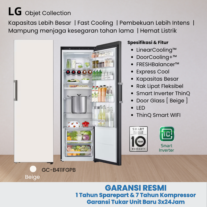 GRATIS ONGKIR LG - Kulkas LG 1 Pintu 386L ThinQ™ Smart Inverter Big Capacity Objet Collection GC-B411FGPB - K1P