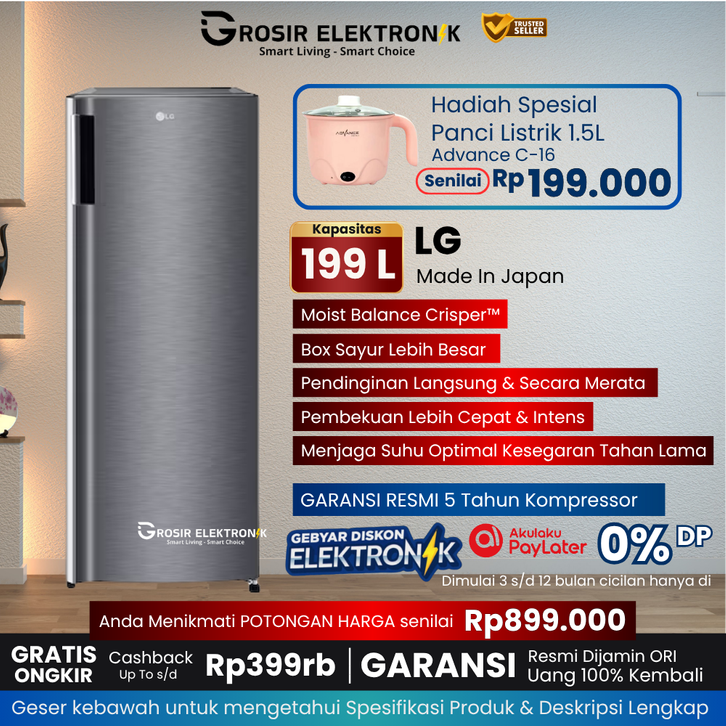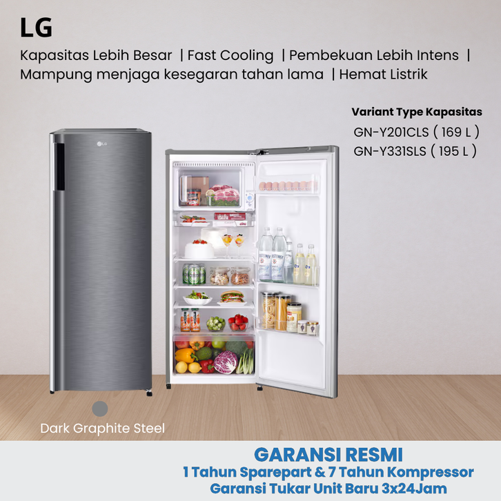 GRATIS ONGKIR - LG Kulkas 1 Pintu 195L Hemat Listrik [ GN-Y1LS 169L - 195L ] - kulkas lg / kulkas lg 1 pintu - K1P