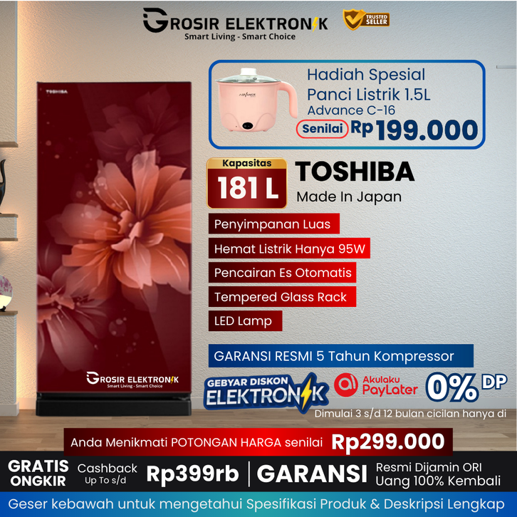 GRATIS ONGKIR TOSHIBA - Kulkas 1 Pintu 181L Jumbo [ GR-RDC 50L - 181L ] - Kulkas toshiba / kulkas toshiba 1 pintu - K1P