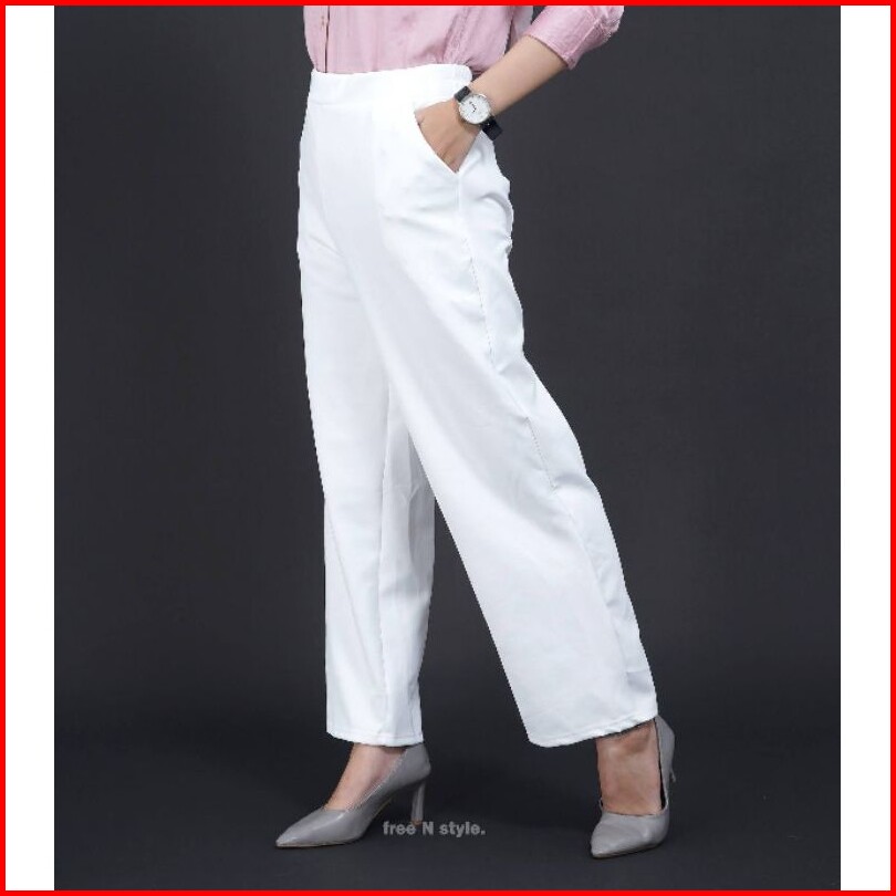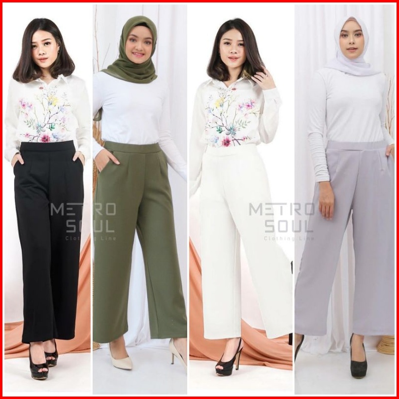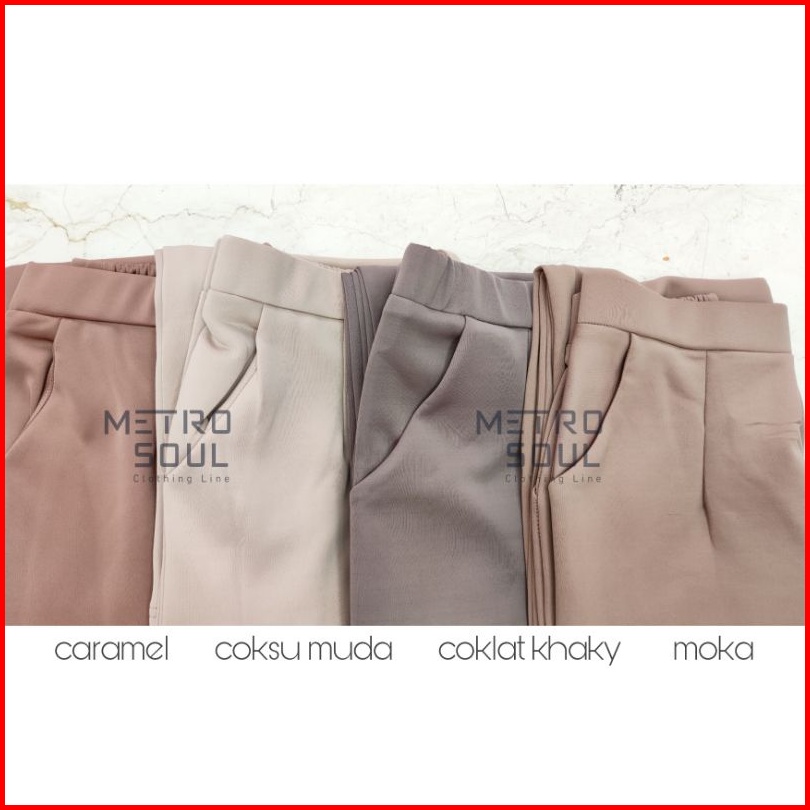Celana Kulot Scuba Pants Premium Melar Stretch - Putih Hitam Cokelat