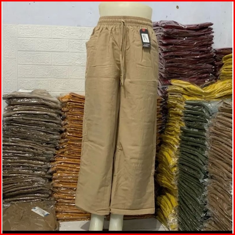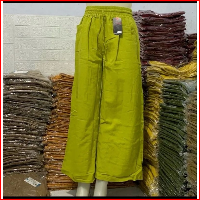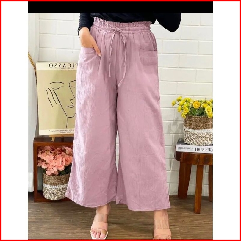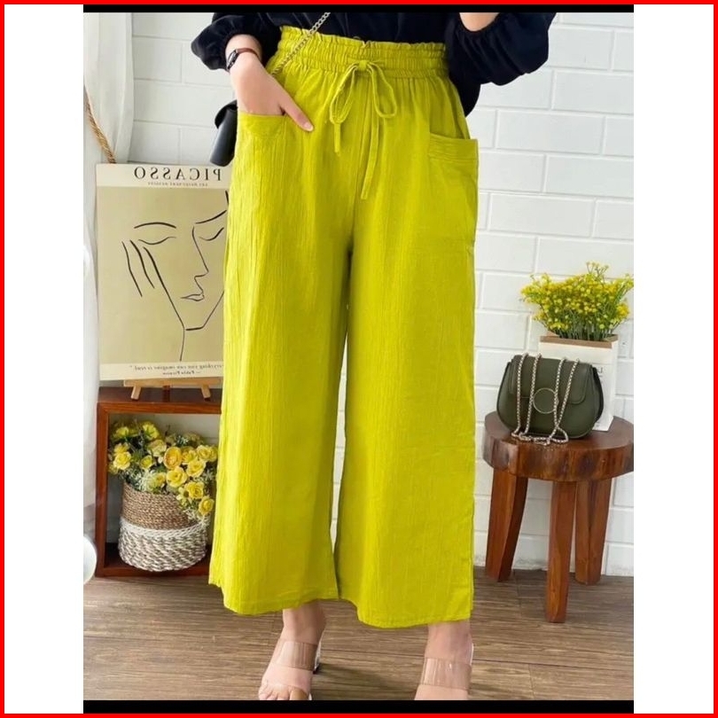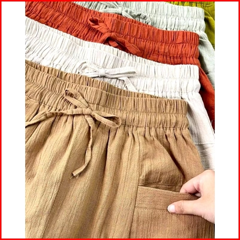 Celana Kulot Wanita Saku Depan Pinggang Karet Warna Cerah Linen Crincle Premium Cullote Pants