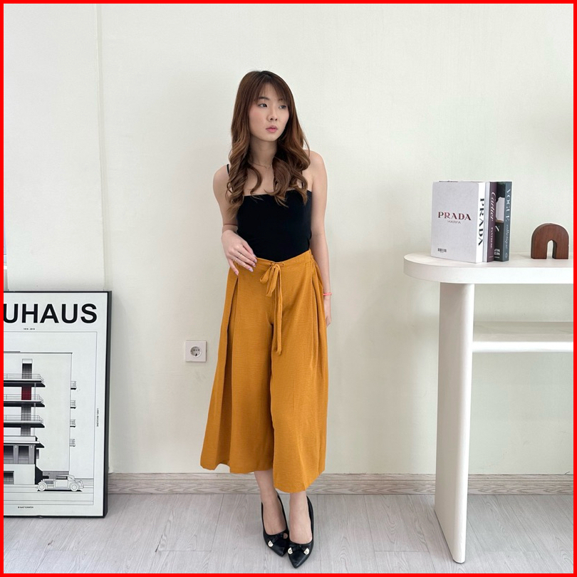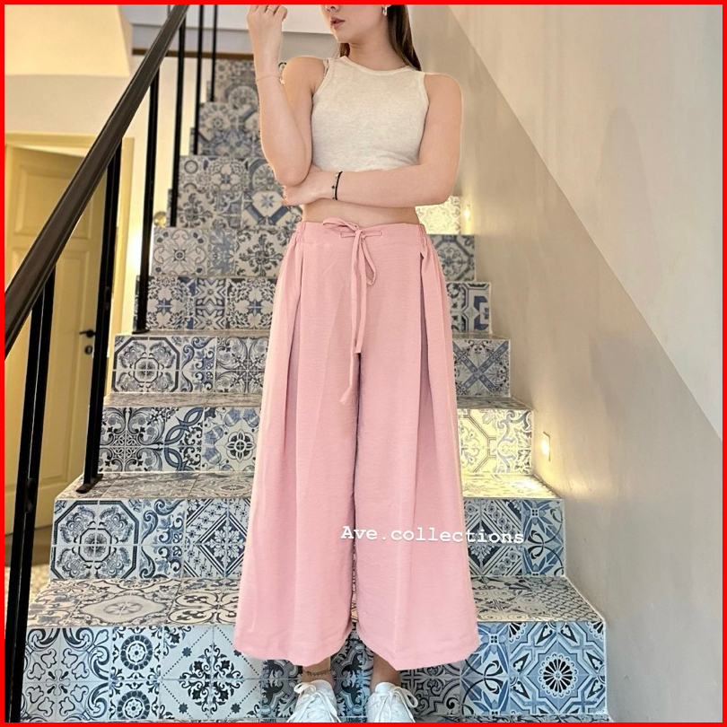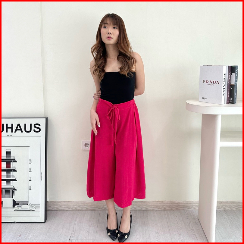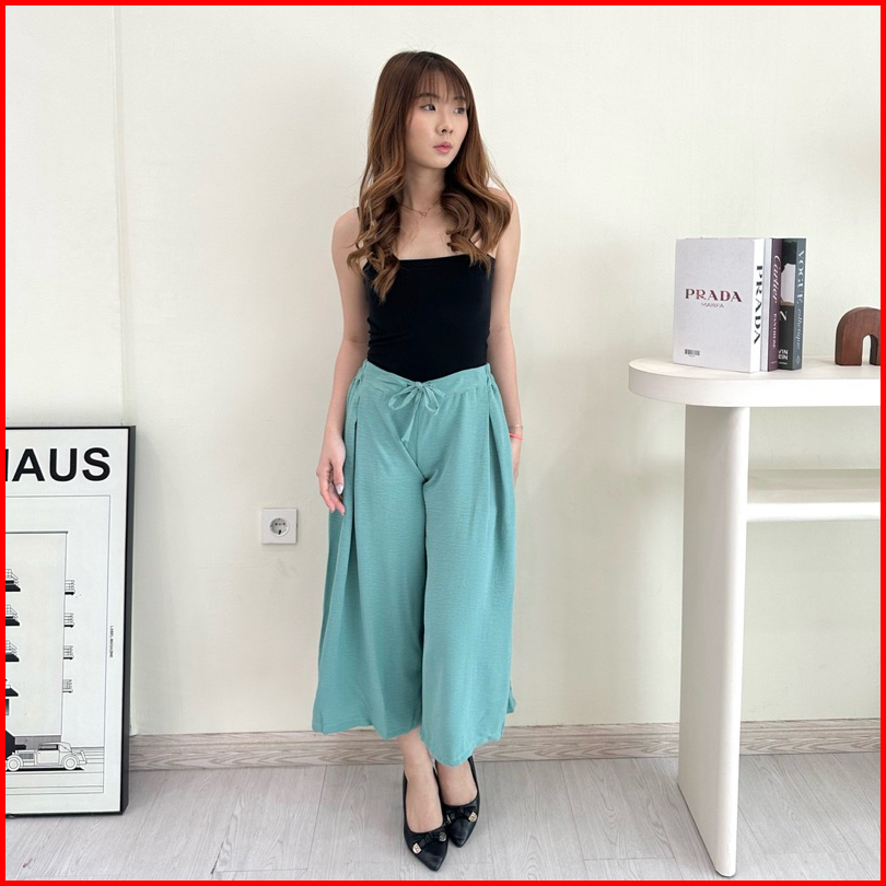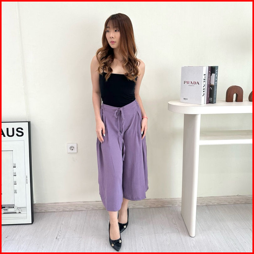Ave - Flowy Qullote Loose Pants Celana Kulot Rok Wanita 7 8