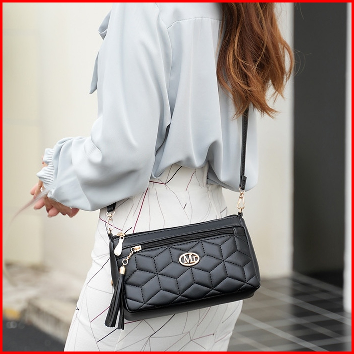 Tas Selempang Wanita Sling Bag Korea Kulit Fashion Casual Branded Remaja Cewek Hitam Ambergia Premium Shoulder Bahu Mura