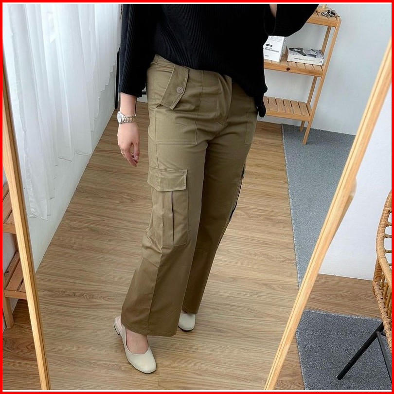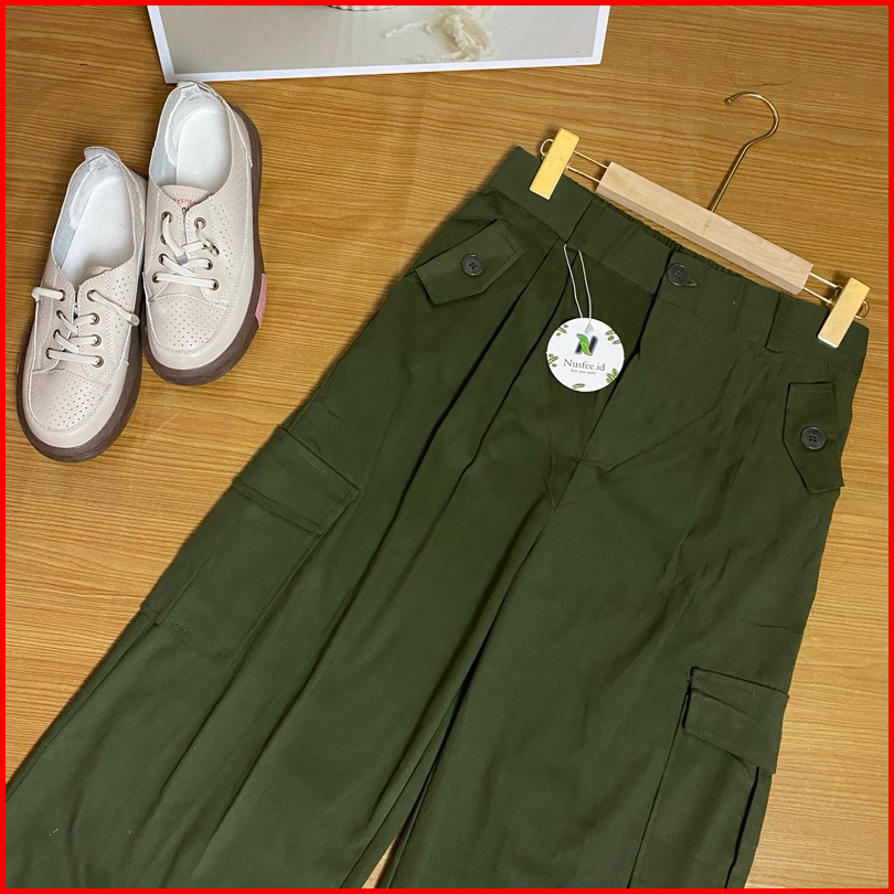 Celana Kulot Cargo Terbaru - Kulot Cargo Strech Elastis - Kulot Cargo Highwaist Jumbo