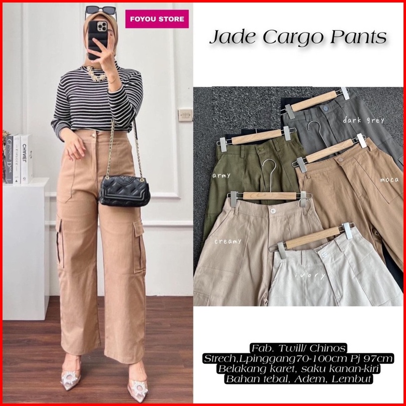 Tb - Jade Kulot Cargo Wanita Katun Twill
