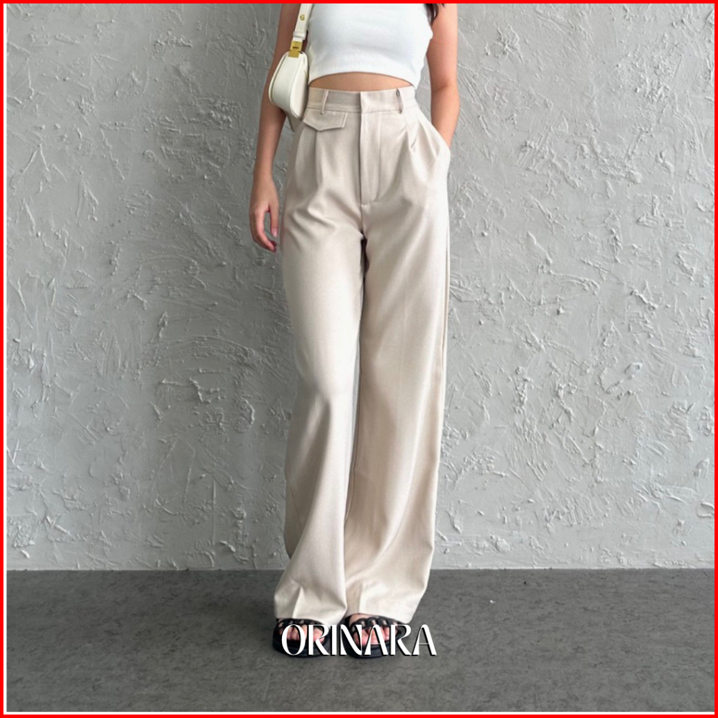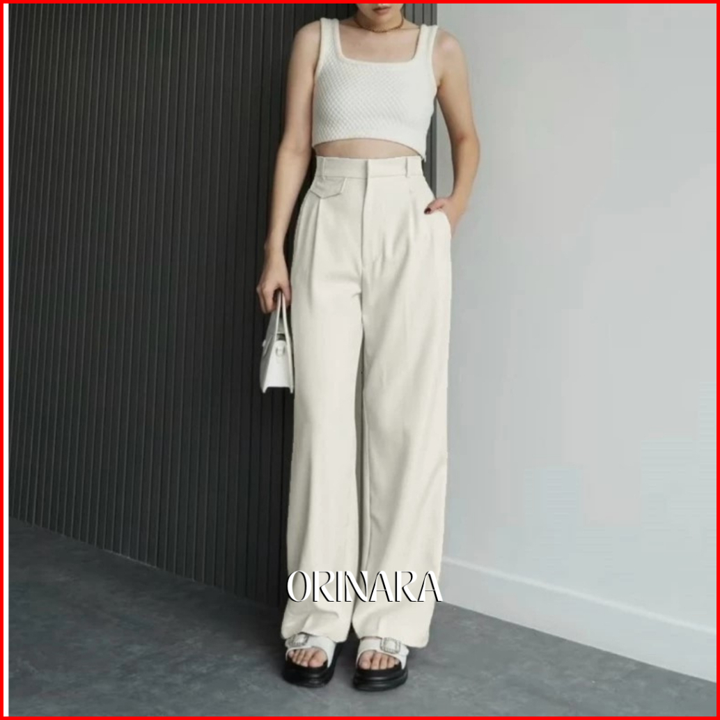 Nara - Celana Kulot Wanita Panjang Highwaist Loose Pants Long Trousers Celana Wanita Wide Pants