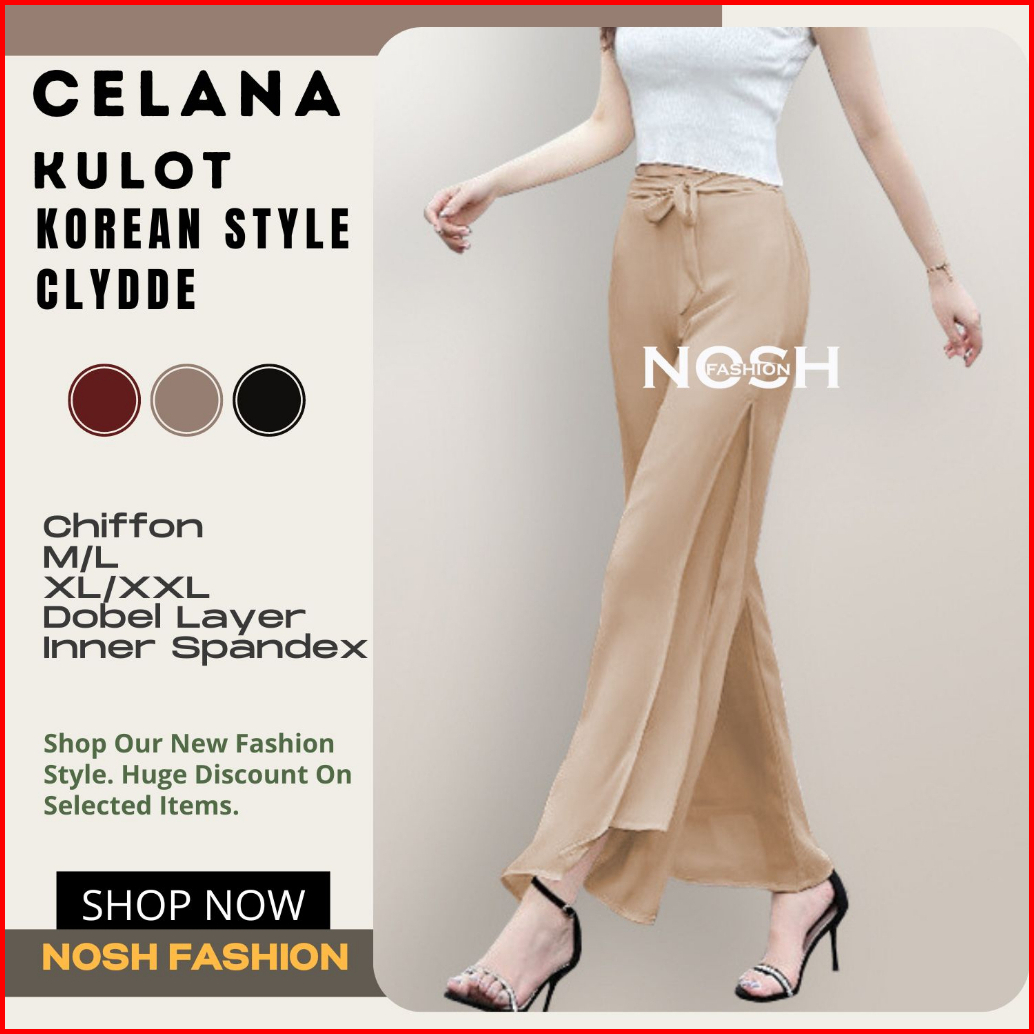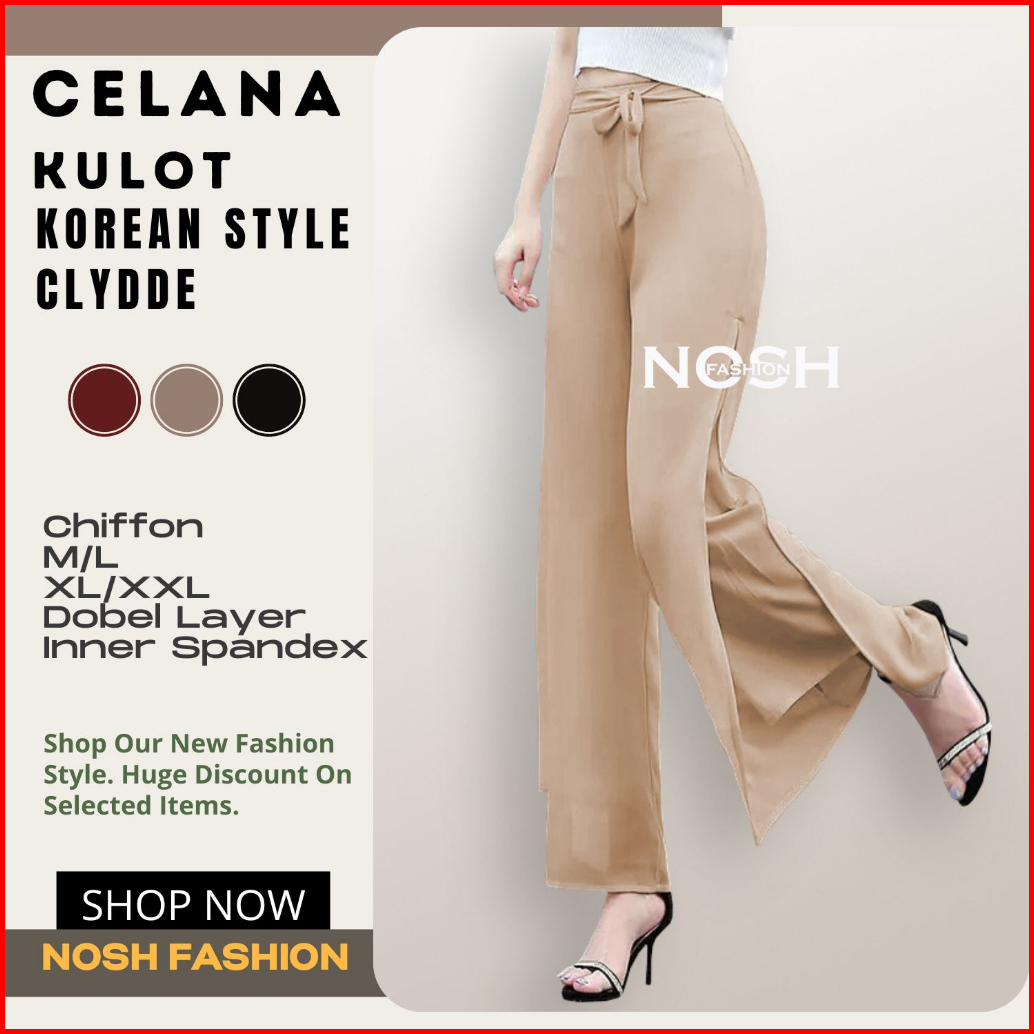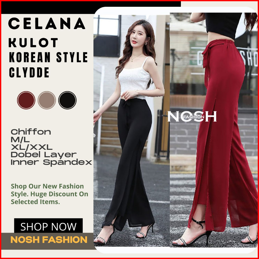 Celana Panjang Wanita Korea Sifon Celana Kulot Korea Variasi Tali Clyde - Nosh
