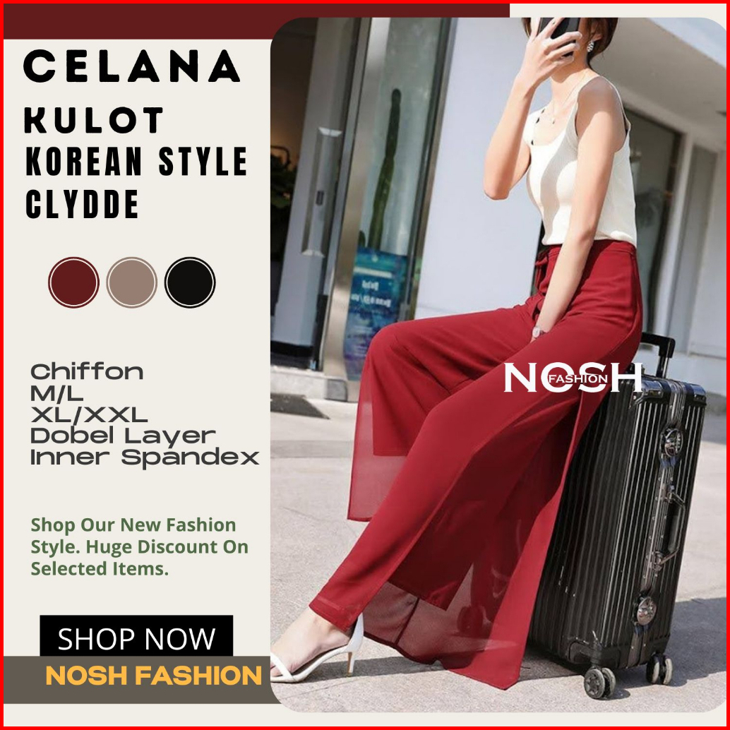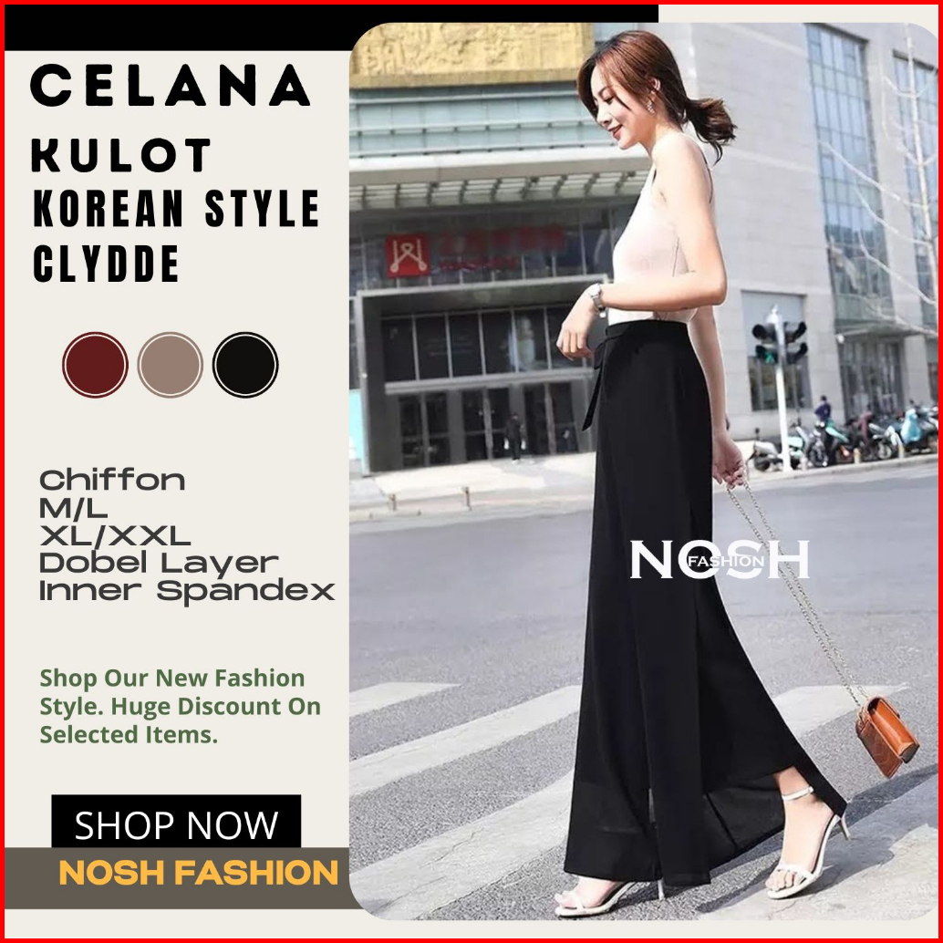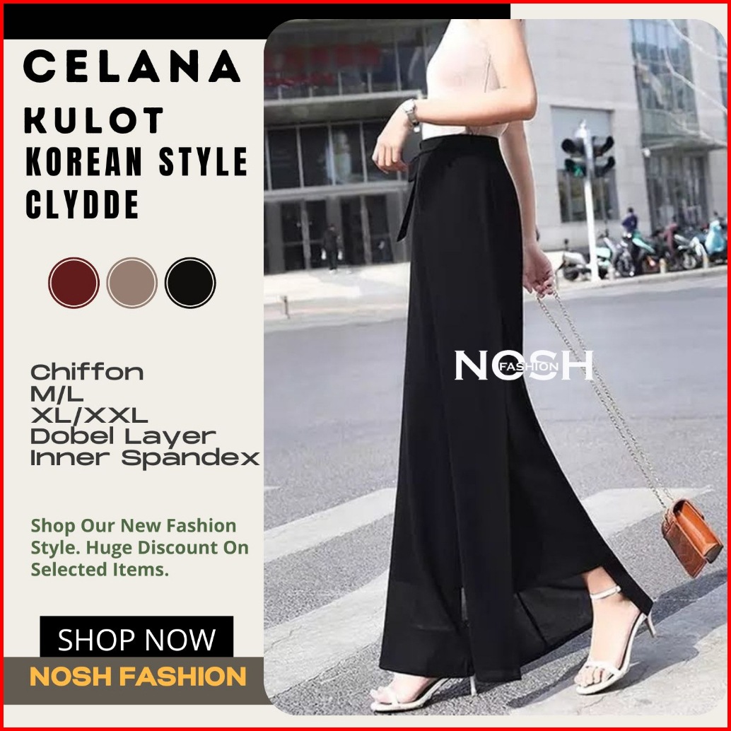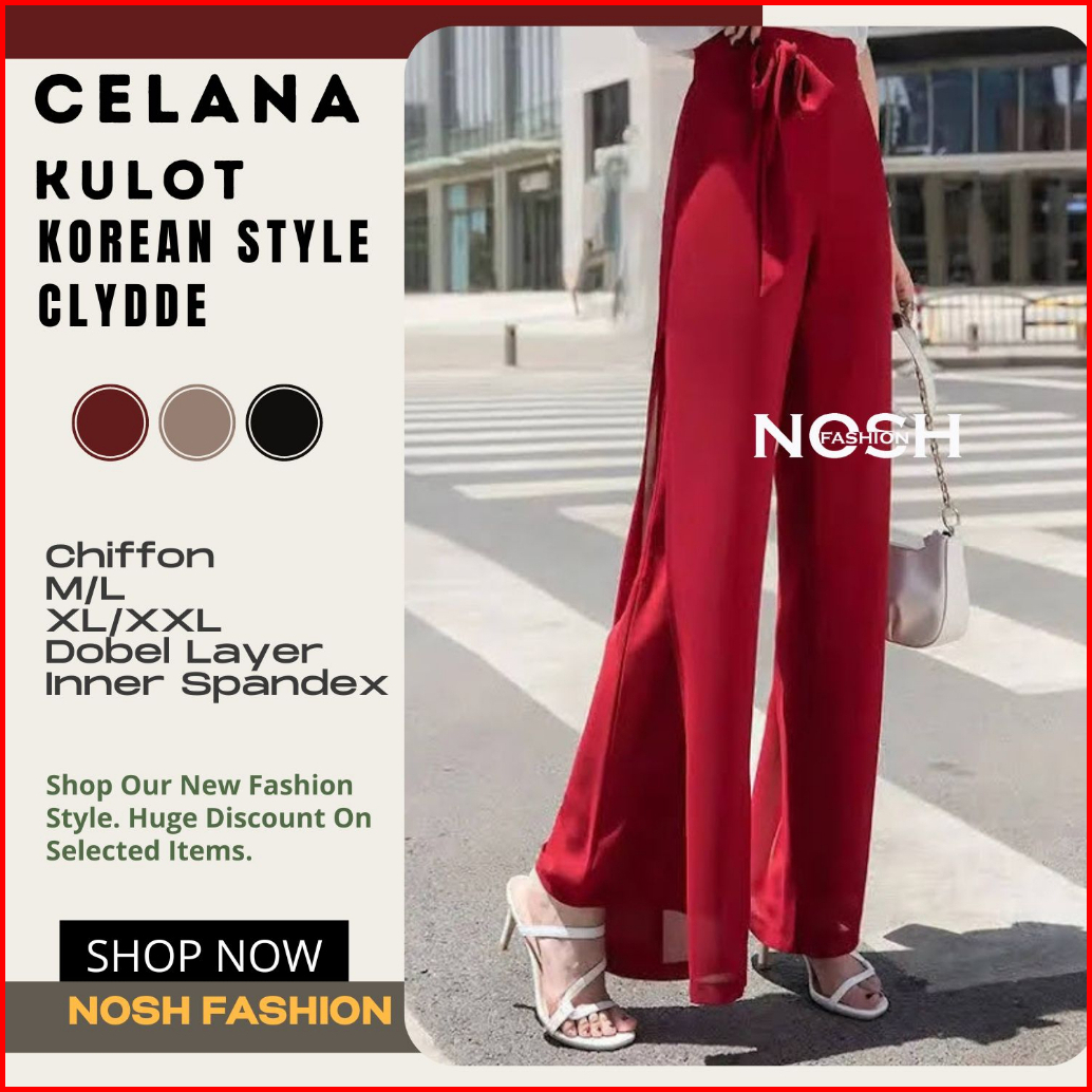 Celana Panjang Wanita Korea Sifon Celana Kulot Korea Variasi Tali Clyde - Nosh