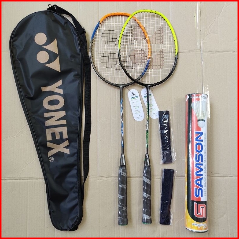 Raket Badminton Lokal Senyawa 21 Lbs Paket Komplit 2 Raket 2 Grip 1 Tas 1 Slop Kok Raket Bulutangkis