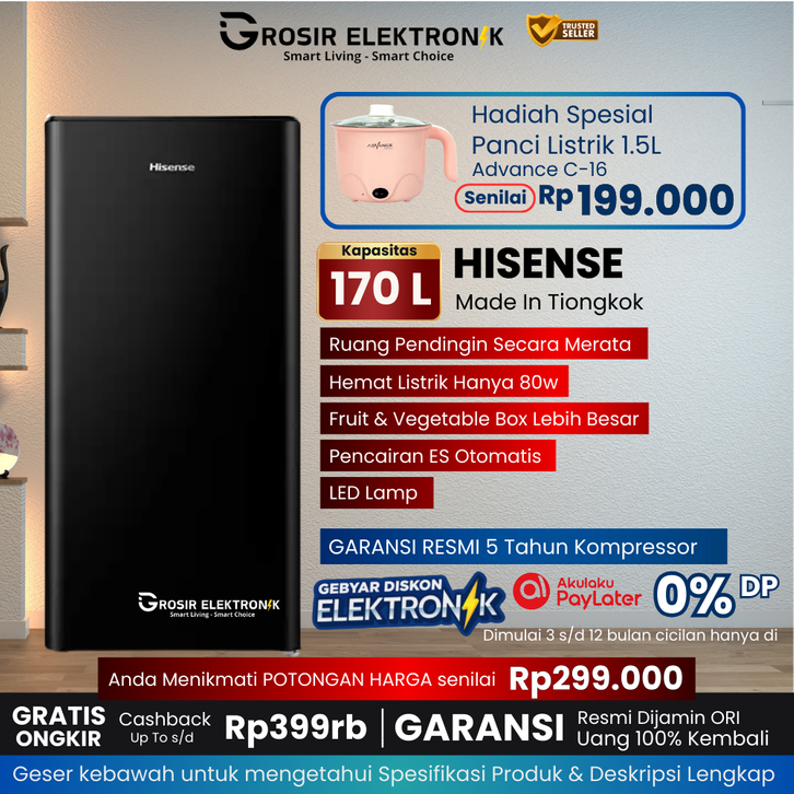 GRATIS ONGKIR - Kulkas 1 Pintu Hemat Listrik 170L [ HISENSE RR-D4 46L - 157L ] - Kulkas 1 pintu low watt - K1P