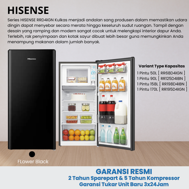 1 Pintu 50L [ RR68D4IGN , 1 Pintu 90L [ RR125D4IBN ], 1 Pintu 158L [ RR198D4IBN ], 1 Pintu 170L [ RR195D4IGN ]]