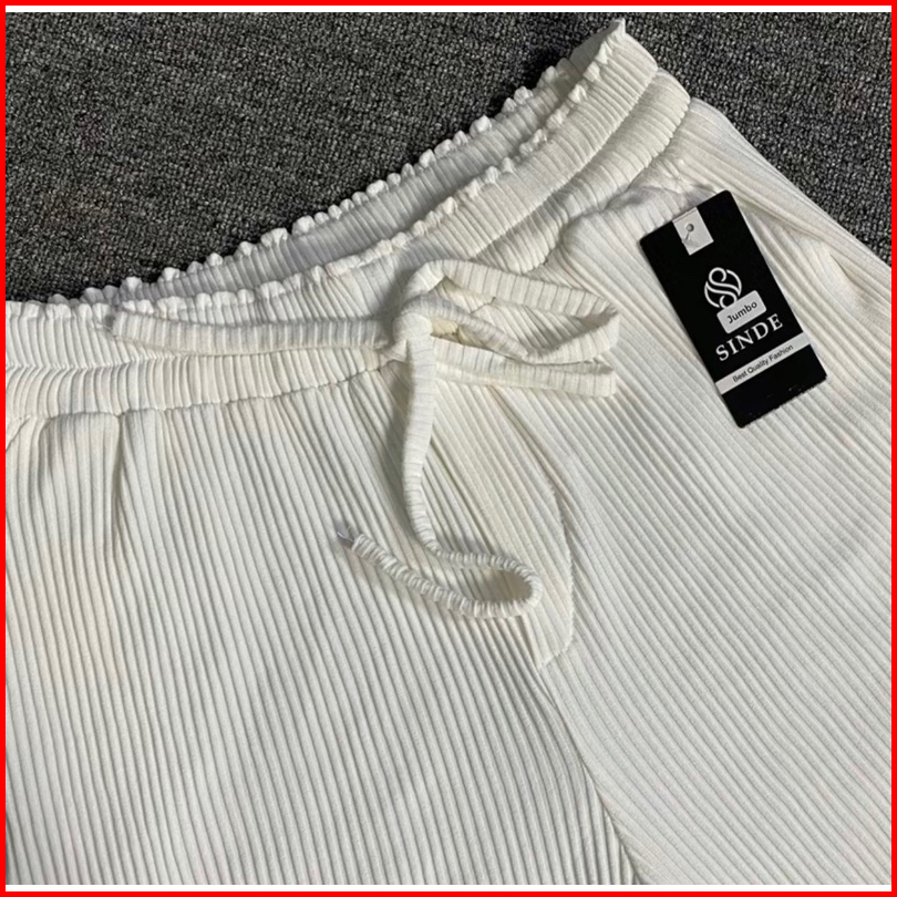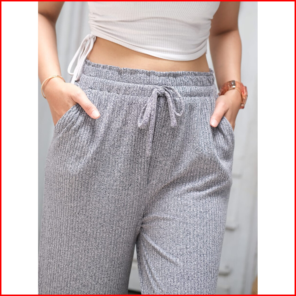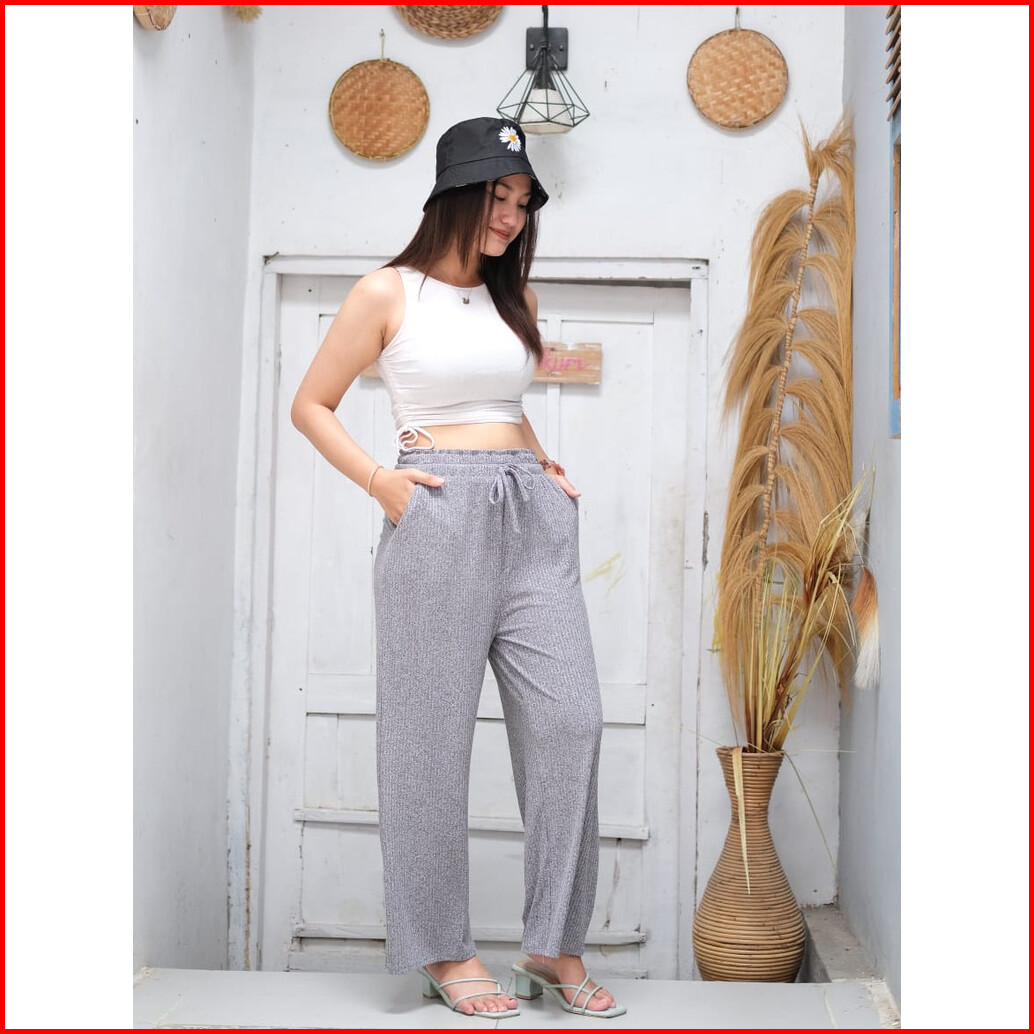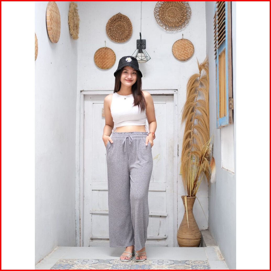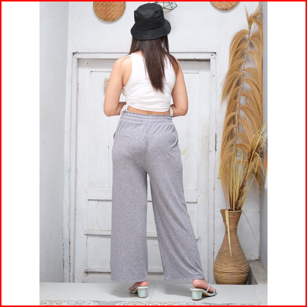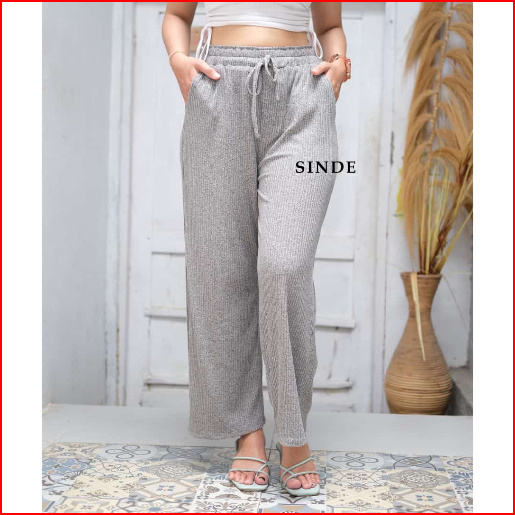 Sinde - Kulot Alvia Hortnets Pants Knit Rajut Rip Losse Highwaist Celana Panjang Wanita Basic Zara Import Premium Jumbo
