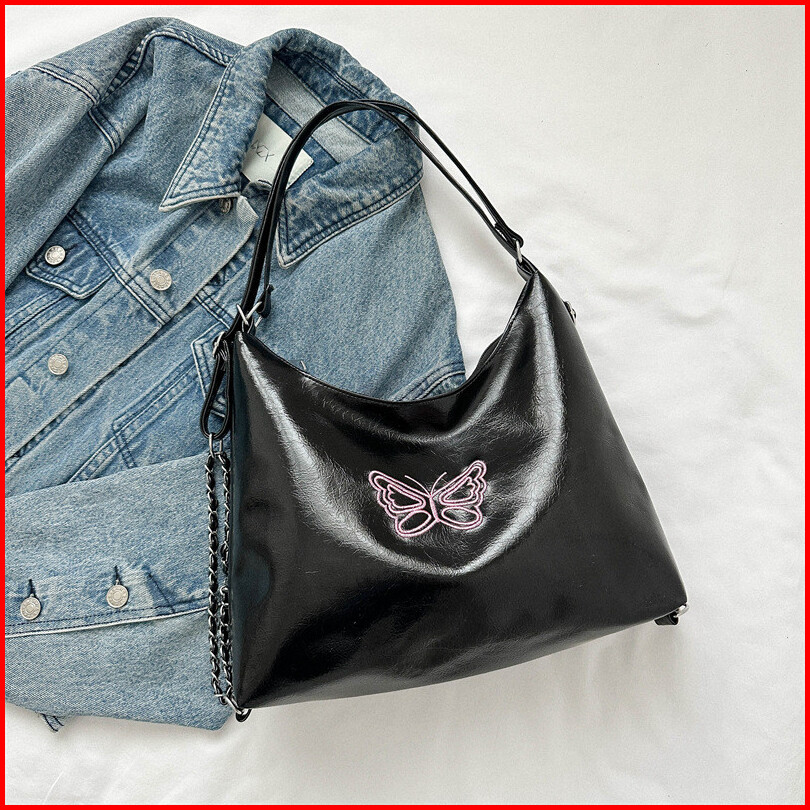 Tas Totebag Wanita Multifungsi Kapasitas Besar Kulit Lembut Dengan Bordir Kupu-kupu Kantong Mdts153 - Cewek Selempang
