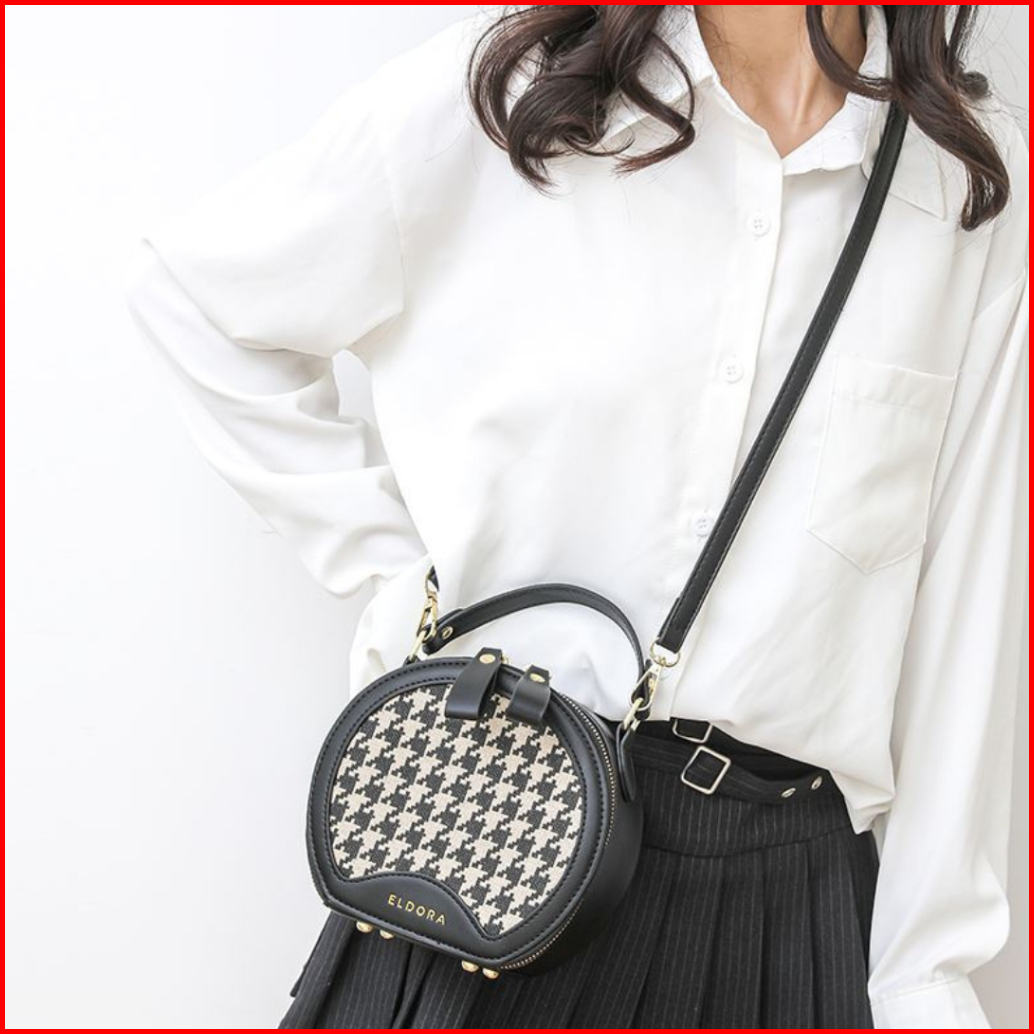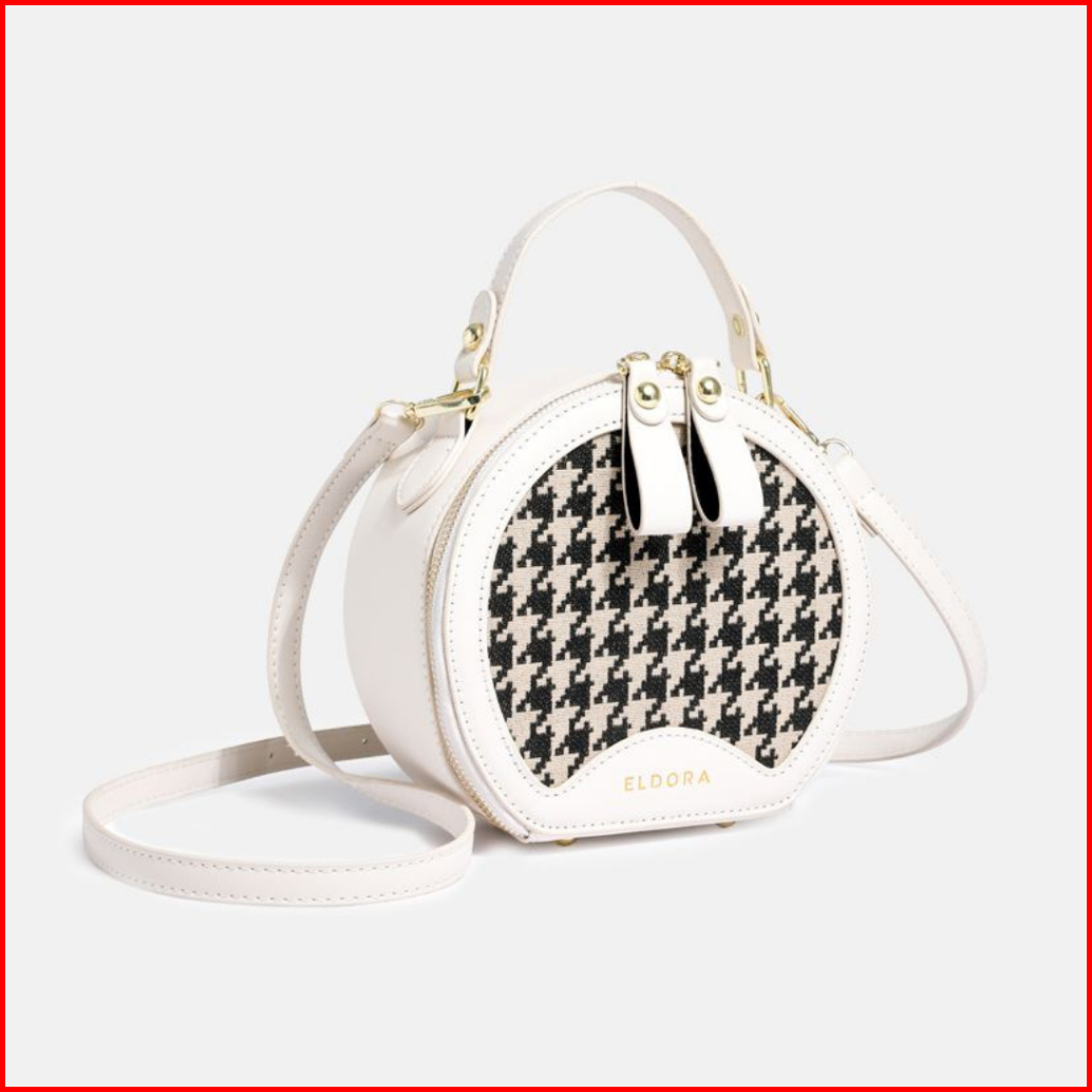 Mytote.bag Flo Tas Tangan Wanita Putih Hitam Motif Kotak Tali Panjang Wanita