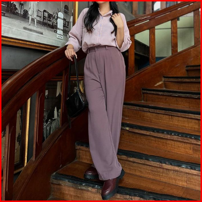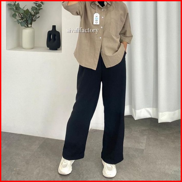 Korean Loose Pants - Celana Kulot Jumbo Wanita Anti Kusut Loosepants Highwaist Polyester Premium