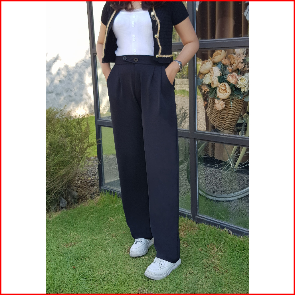 Celana Wanita Highwaist Loose Pants Polos Korean Style