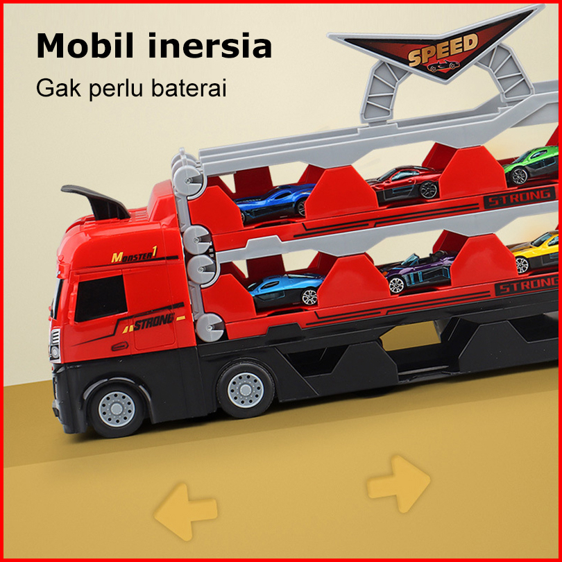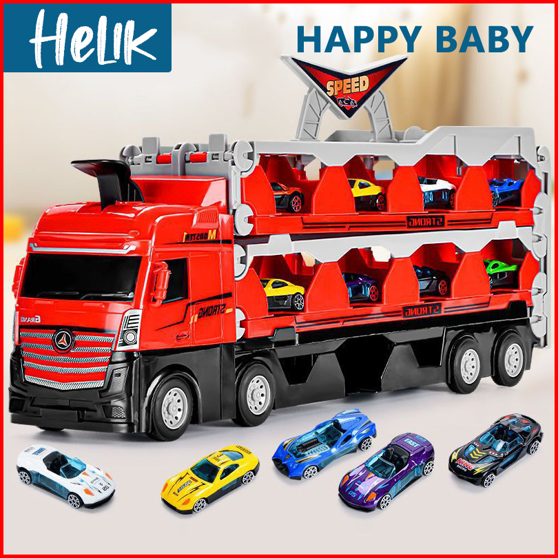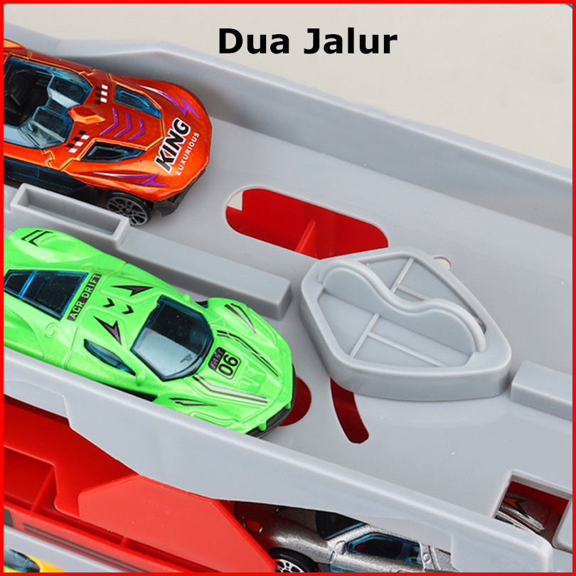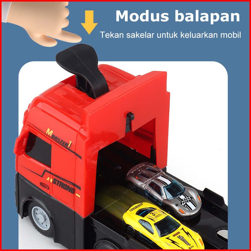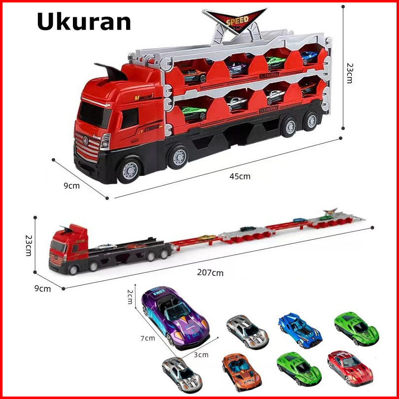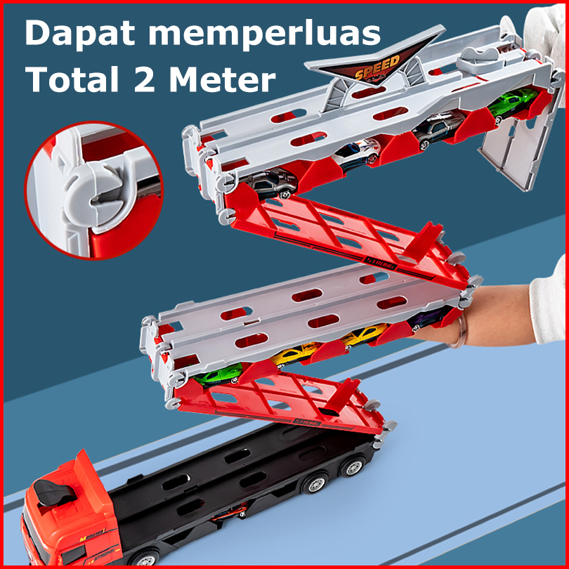 Mobil Truk Container Catapult Mainan Hauler Truk Dengan Lintasan Balap Ejeksi Lipat Dua Jalur 207cm