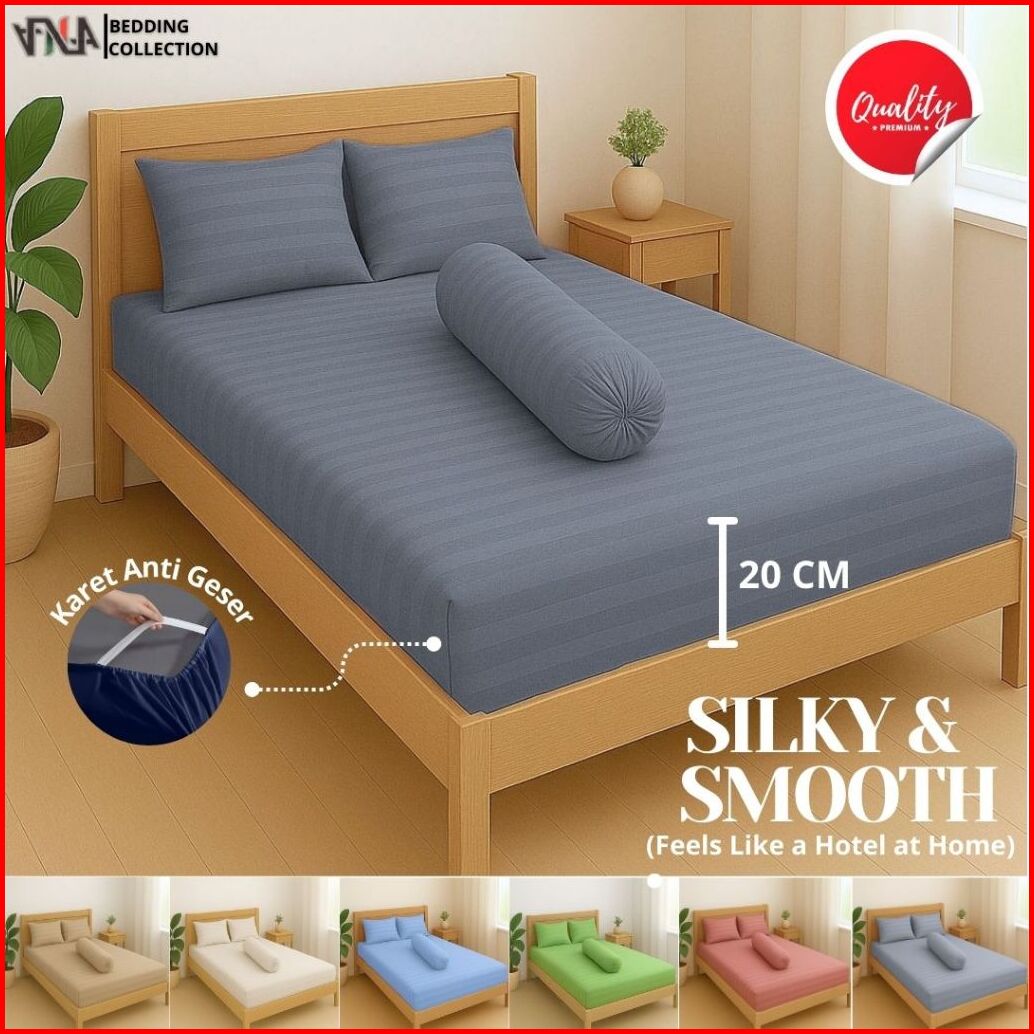 Ready Tinggi 20cm Sprei Set Hotel Salur Bahan Microtens L Silk Premium Grade A Lebih Tebal