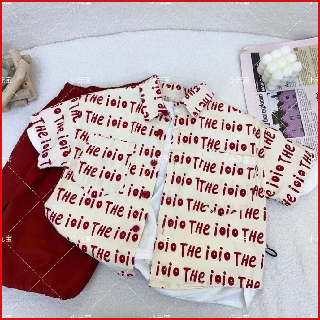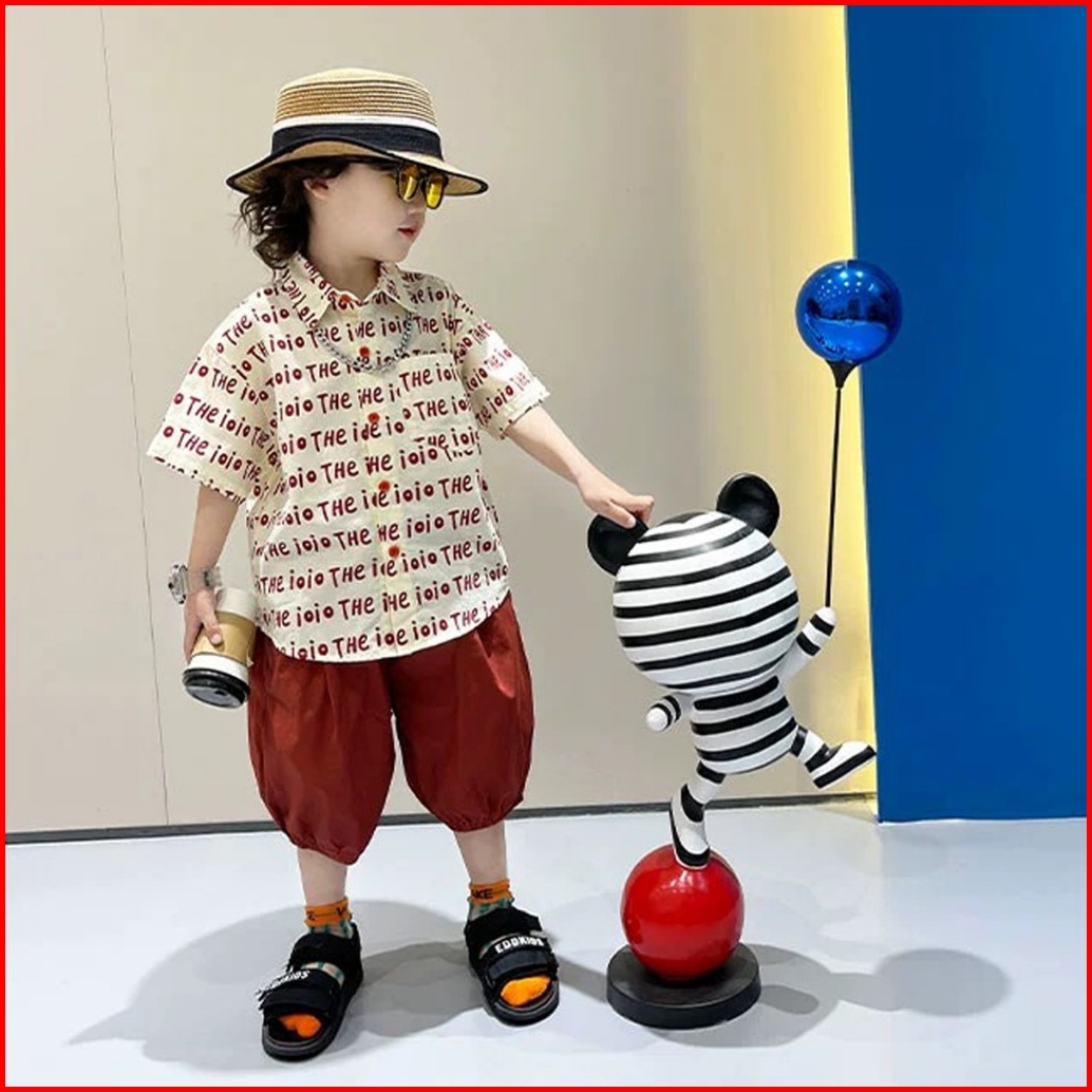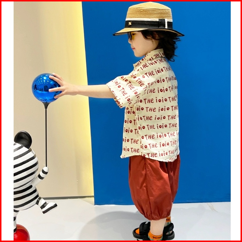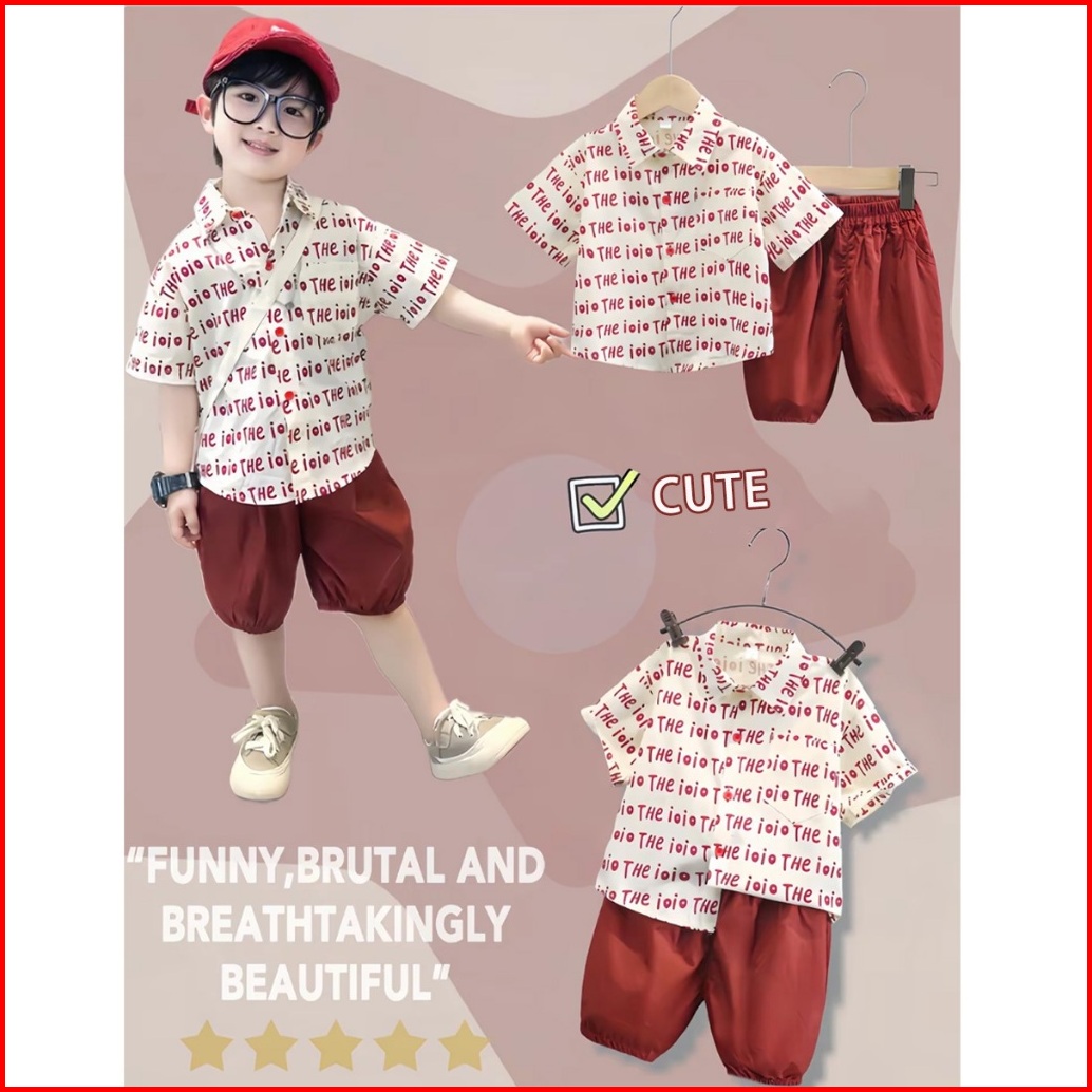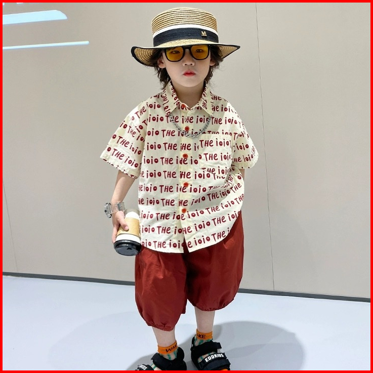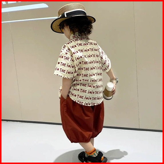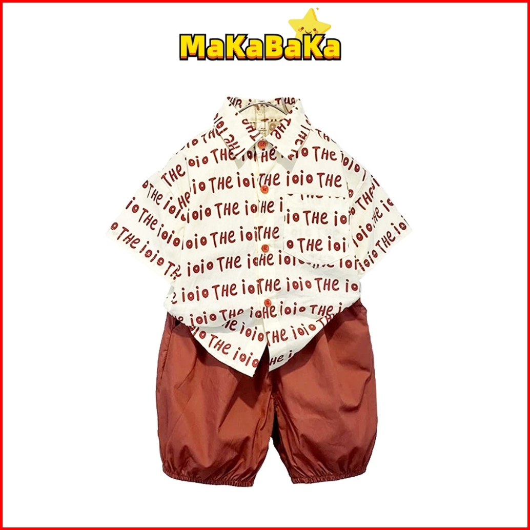 Makabaka Korean Style Setelan Anak Laki-laki Kemeja Lengan Pendek Celana Cargo Bahan Cepat Kering Baju Anak Laki-laki