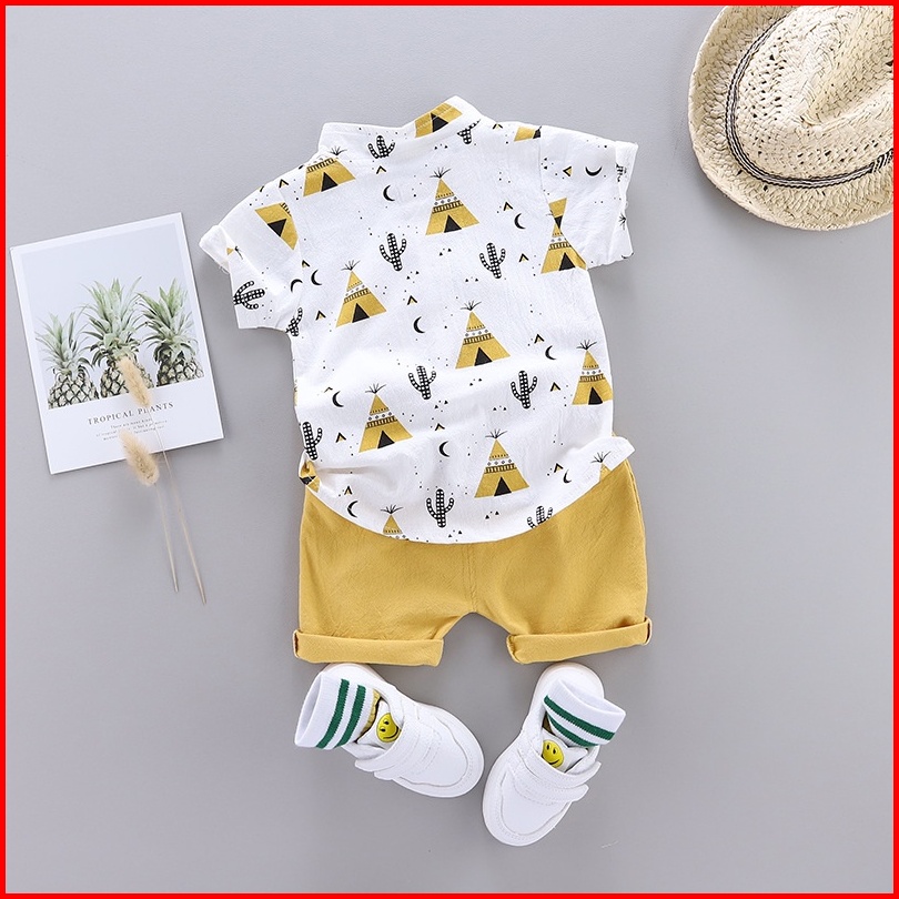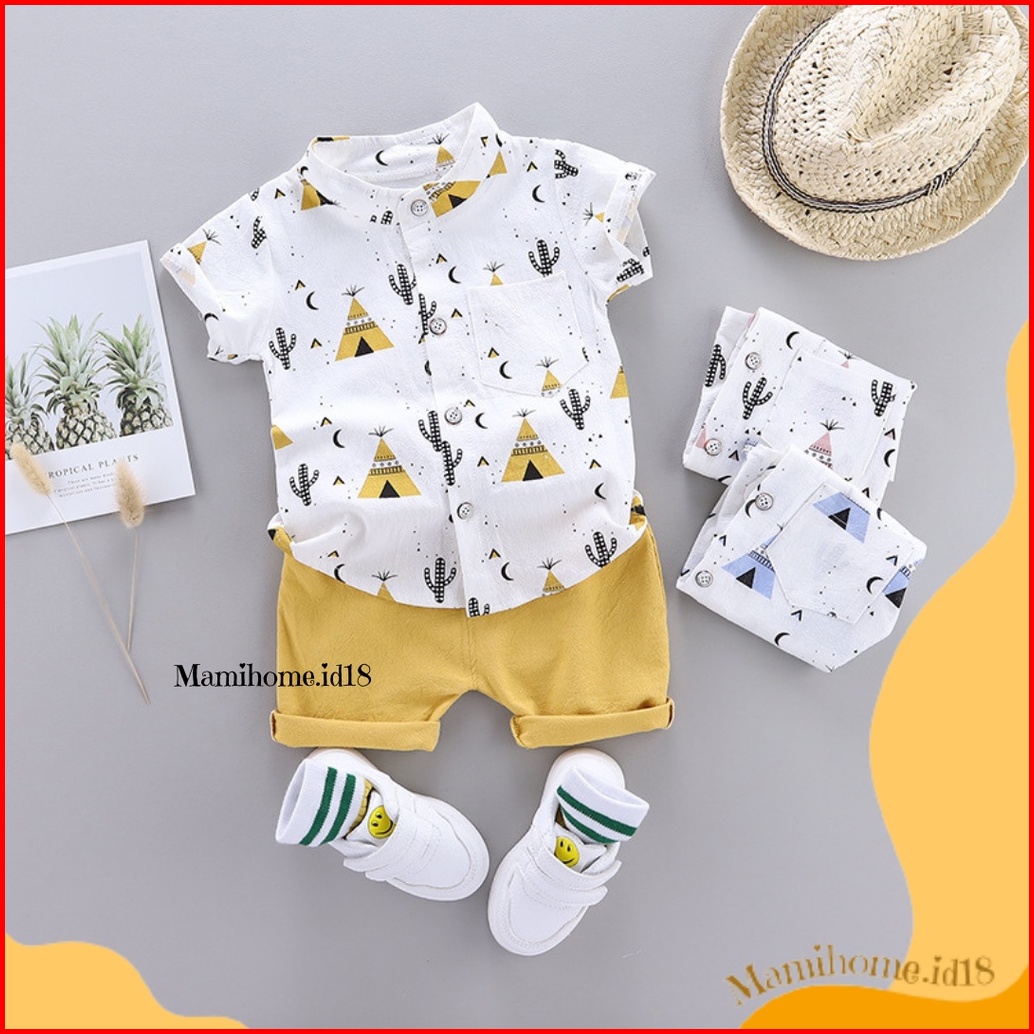 Mamihome Set Kemeja Anak Piramid Setelan Anak Import Setelan Kemeja Anak Motif Piramid Baju Anak Laki Laki Kb06