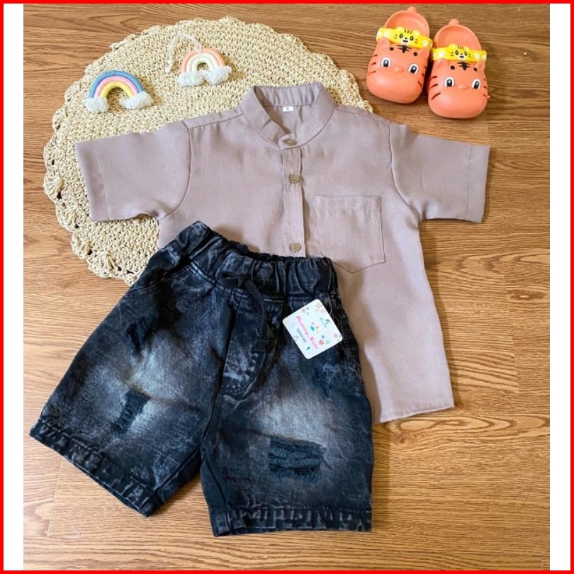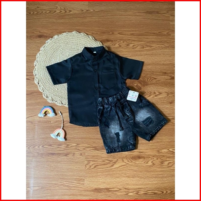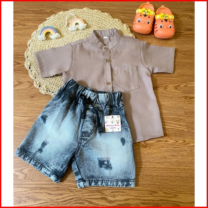 One Set Anak Kemeja Dan Jeans Pendek Setelan Anak Laki-laki Setelan Anak Untuk Anak Usia 1-10 Tahun