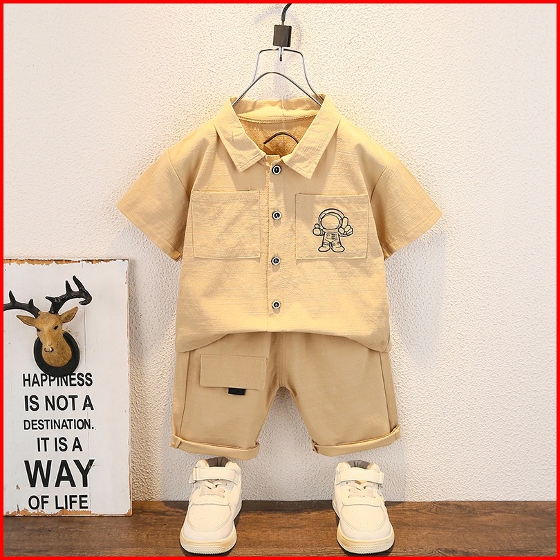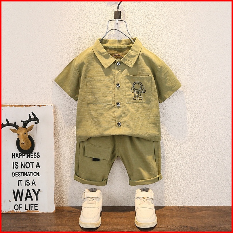 Pakaian Kemeja Fashion Anak Laki Laki Katun Set Baju Luar Ruangan Pria Bayi Korea Tampan