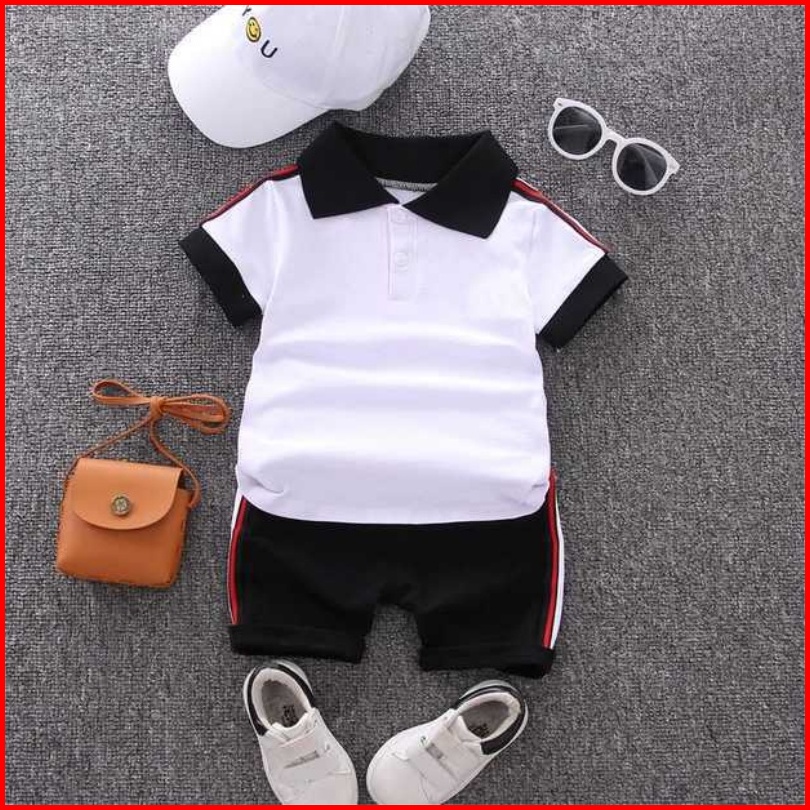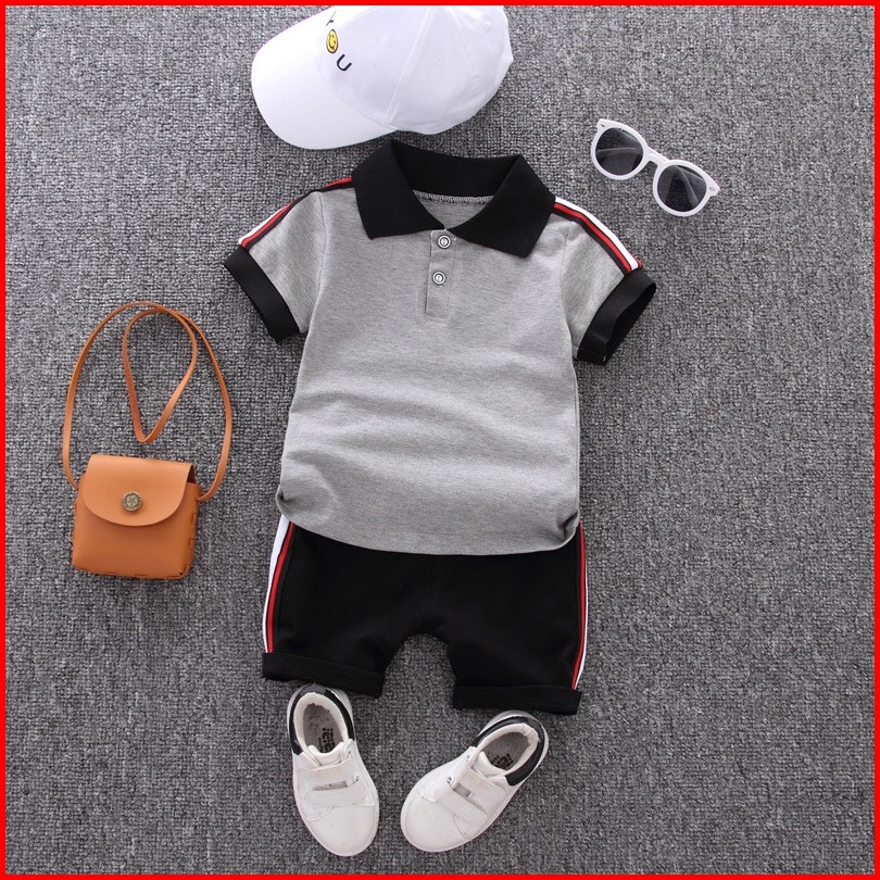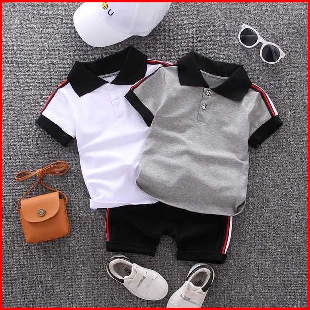 Set Polo Mode Korea Sederhana Anak Laki Laki Kemeja Necis Anak Anak Dengan Celana Pendek Katun Kasual