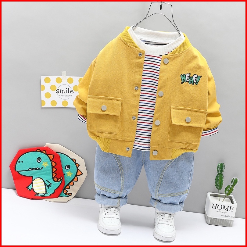 Promo 9.9 Happyoliver Set Hey You Dino Ebv Setelan 3in1 Kemeja Bayi Anak Laki-laki Import Lengan Panjang Berkualitas