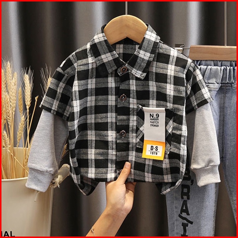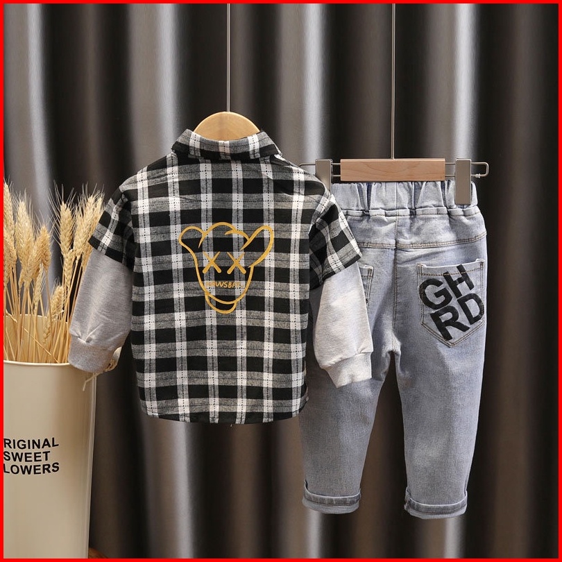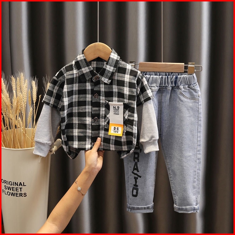 Promo 9.9 Cuci Gudang Happyoliver Set No Ds Jeans Ebv Setelan Kemeja Bayi Anak Laki-laki Import Lengan Panjang Berkualit