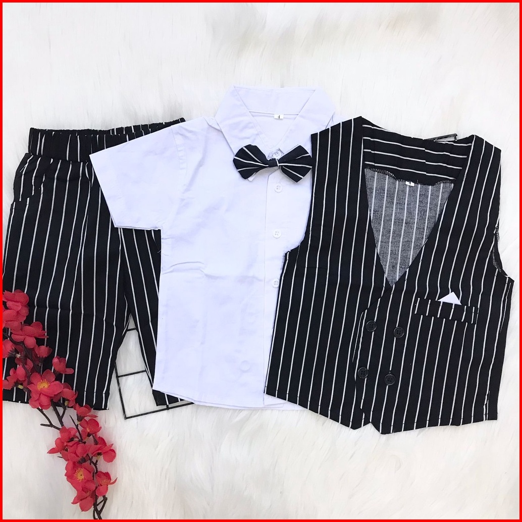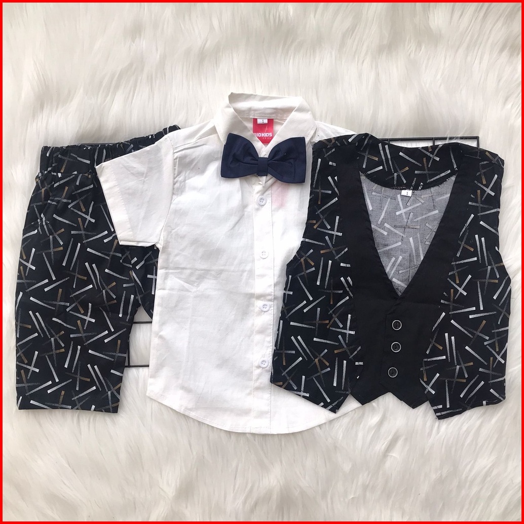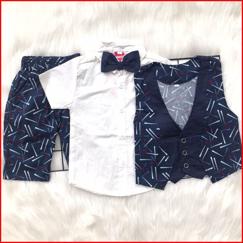 Baju Setelan 4in1 Kemeja Vest Celana Dasi Pergi Hangout Fashion Anak Bayi Cowok Laki Murah -sam