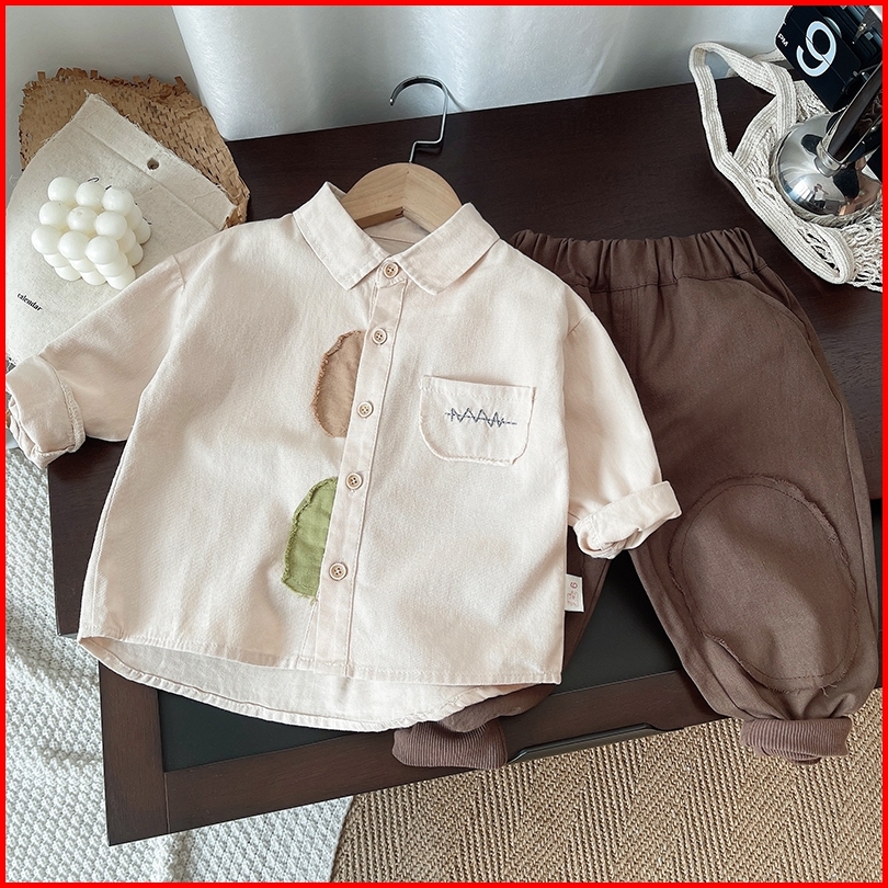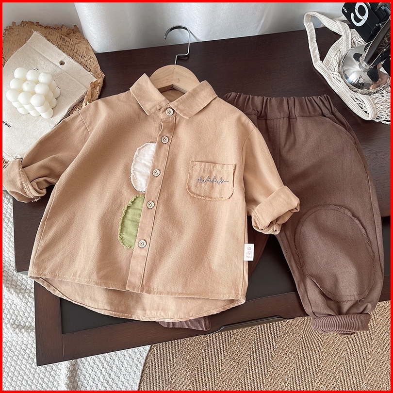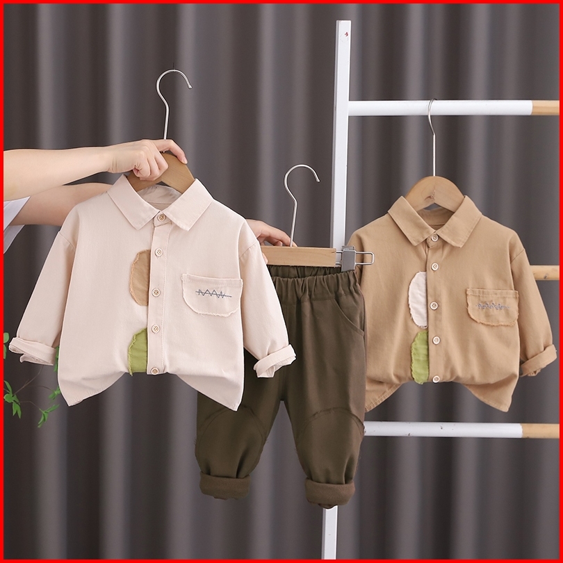 Setelan Kemeja Anak Laki Laki Import Setelan Kemeja Lengan Panjang Model Polos 3 Warna Impor Setelan 2pcs Kemeja Motif K