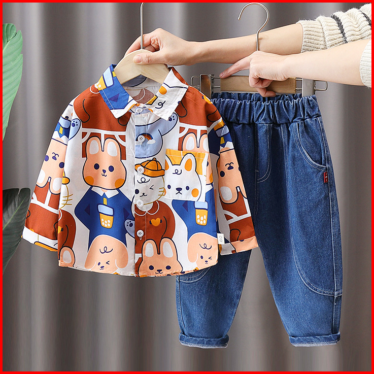 Setelan Anak Laki Laki Baju Anak Laki Laki Kemeja Lengan Panjang Dan Celana Jeans