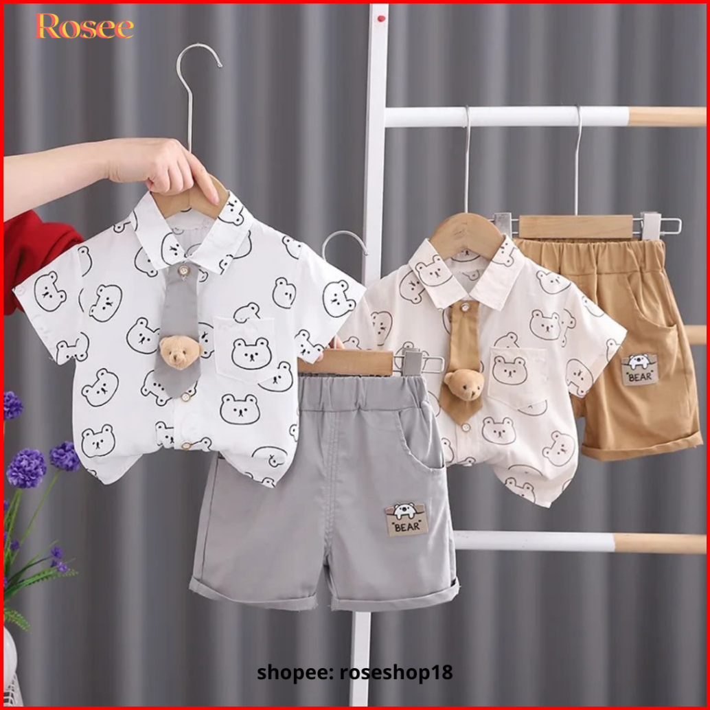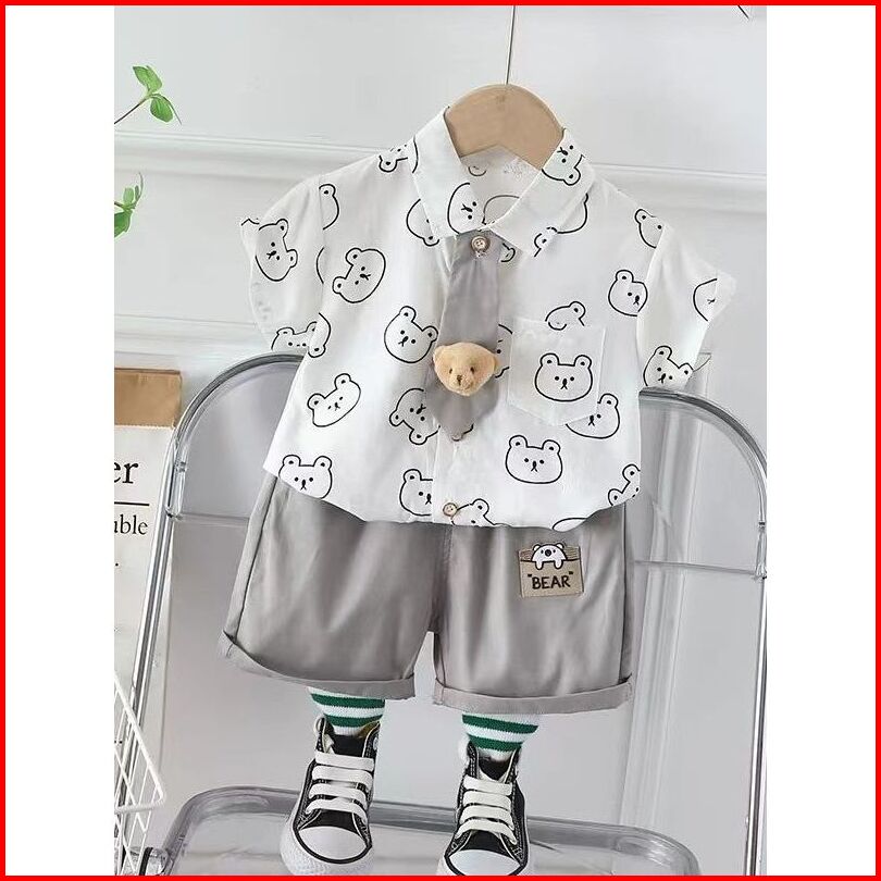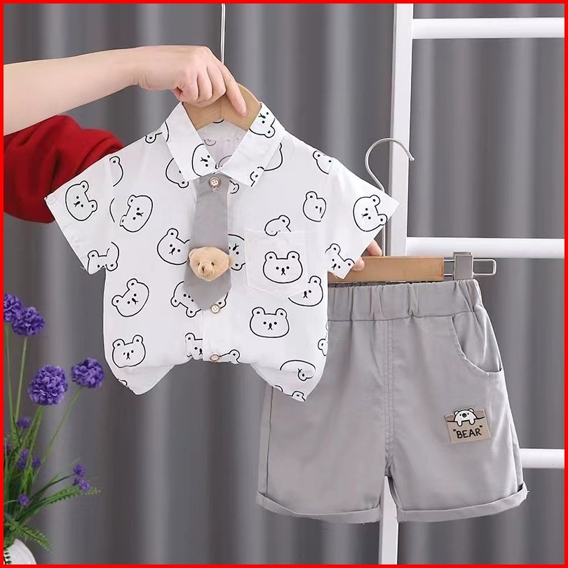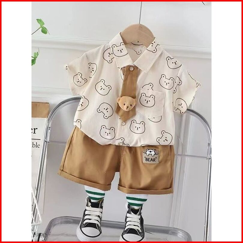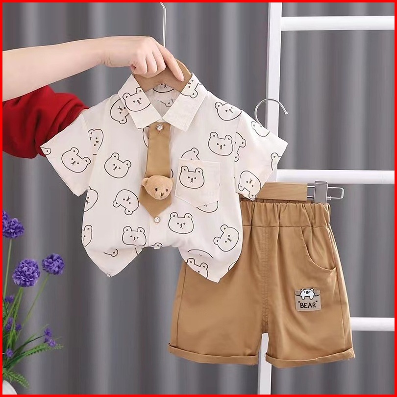Rose - Setelan Kemeja Anak Motif Beruang Satu Set Dengan Dasi Baju Anak Laki Laki Kb34