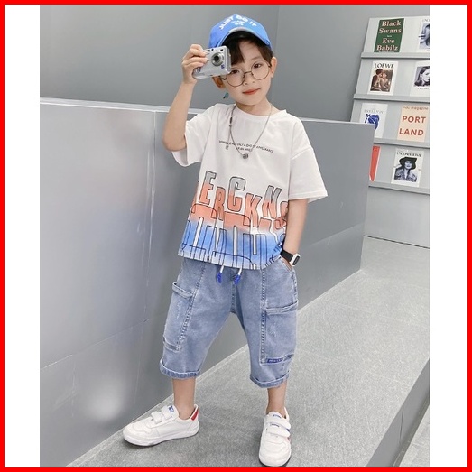 Setelan Anak Laki Laki Import Motif Aerckns Jeans Tebal- Setelan Anak Teenager Laki Laki Import