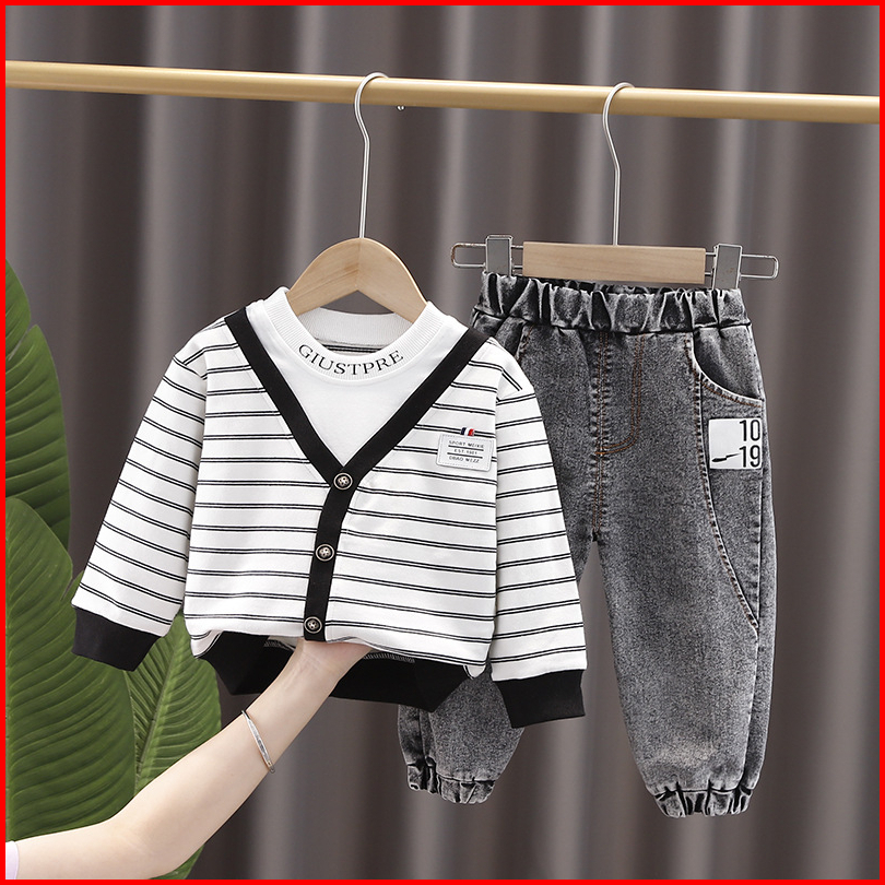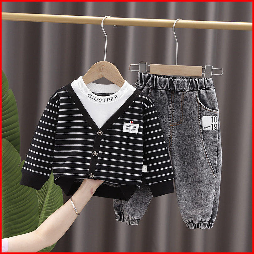 Setelan Lengan Panjang Anak Laki Laki Sweater Celana Panjang Fashion Korea Import Terlaris