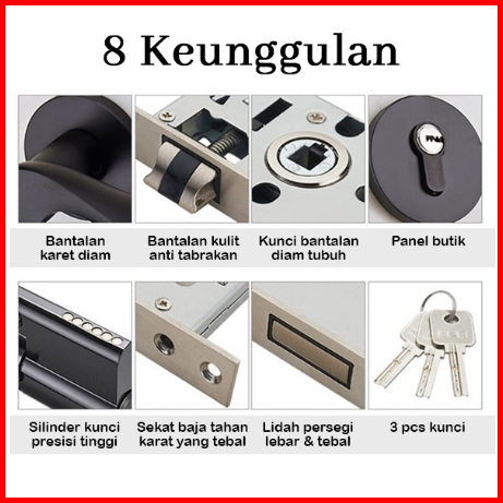 Gagang Pintu Gaya Eropa Handle Lock Door Bedroom Living Room Mechanical Anti-theft Security Mute